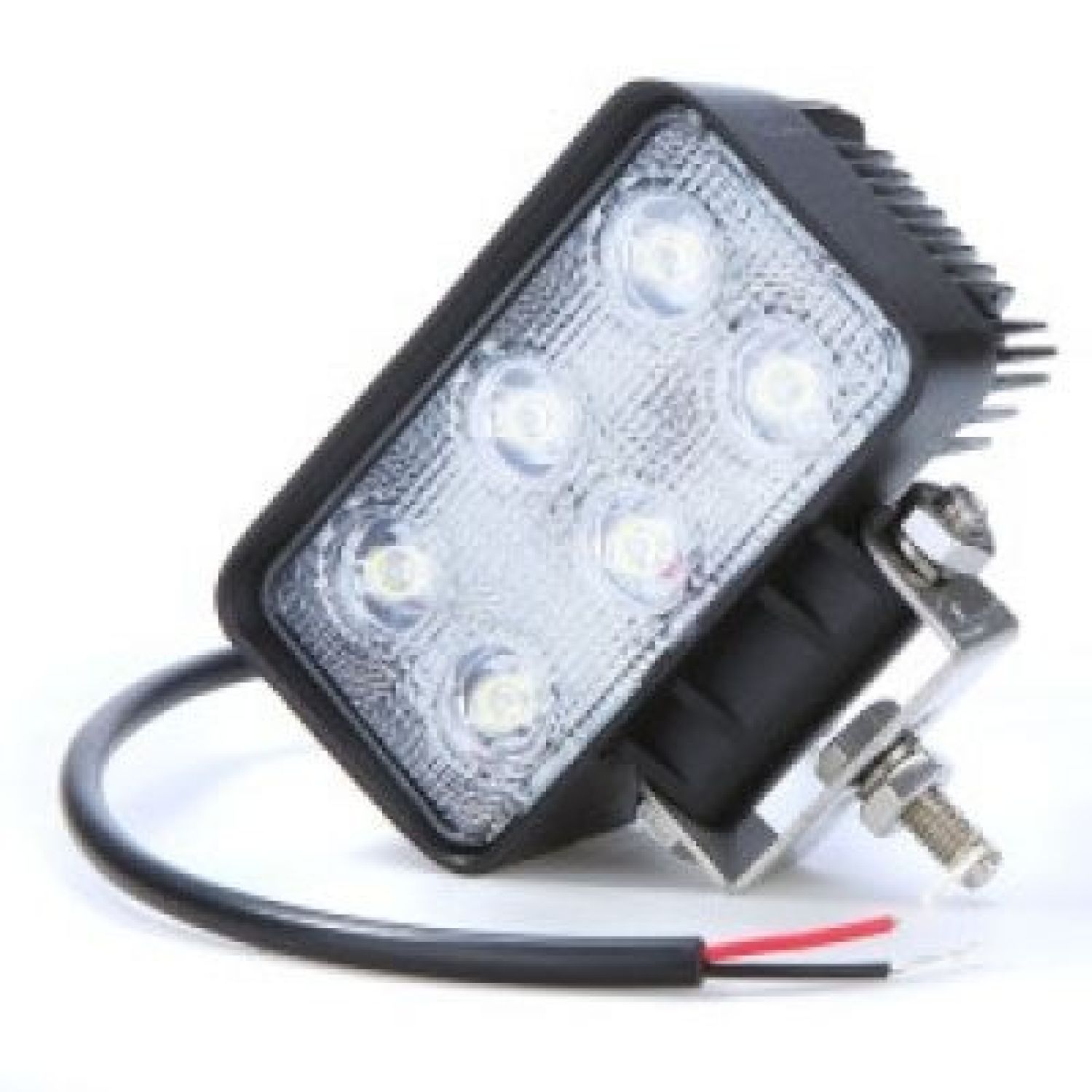 LED Power: 18W . Operating Voltage: 10-30V DC . Waterproof rate: IP 67 . 6pcs*3w high intensity Epsitar LEDs . Optional Color: Black . Color Temperature: 6000K . Material:Diecast aluminum housing . Lens material:PMMA . Mounting Bracket: Stainless Steel . Opitonal Beam: flood 60 degree . 30000 hours above life time . Size: 128mm*116mm*48mm