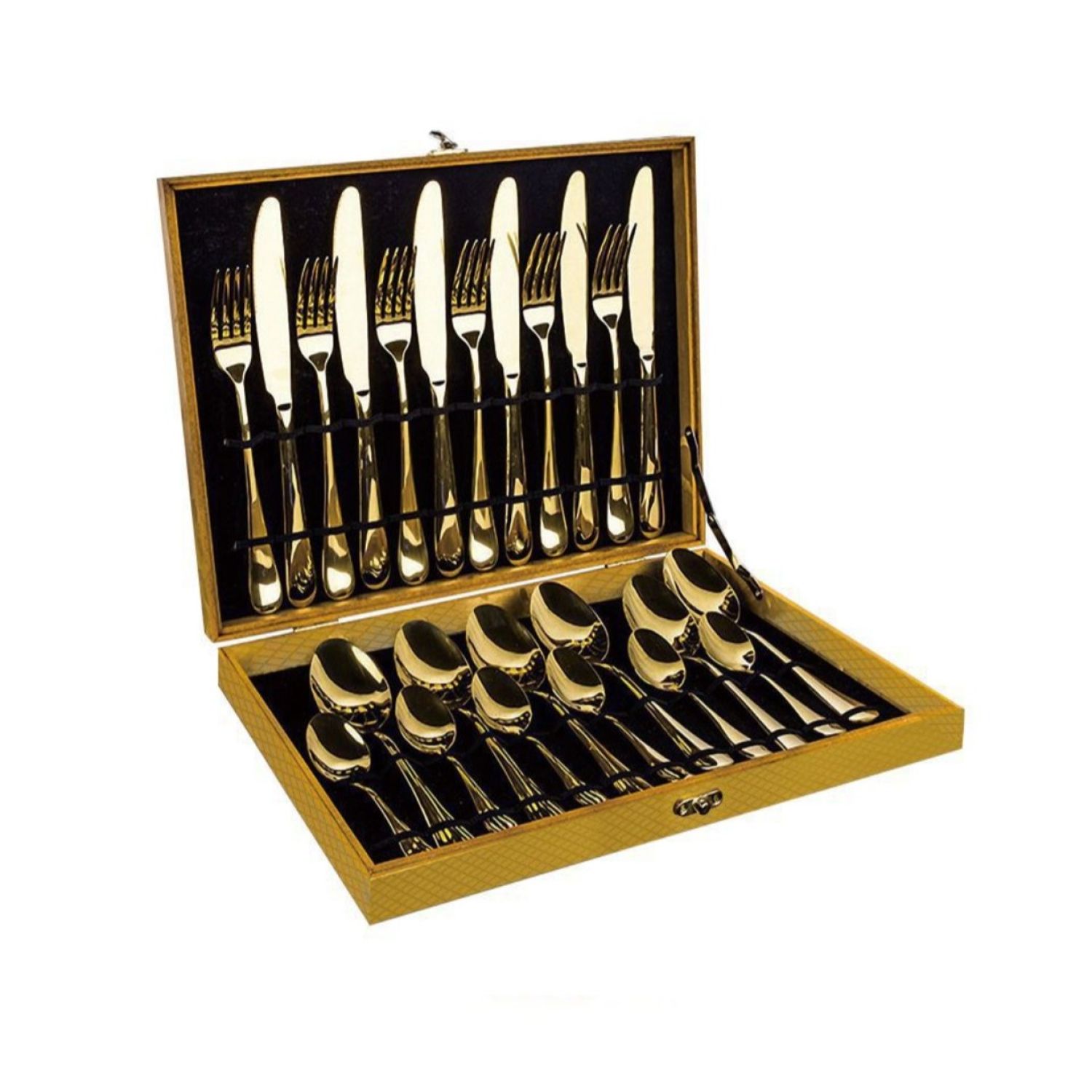 1 x 24-Piece Stainless Steel Cutlery Set in a Golden Gift Box