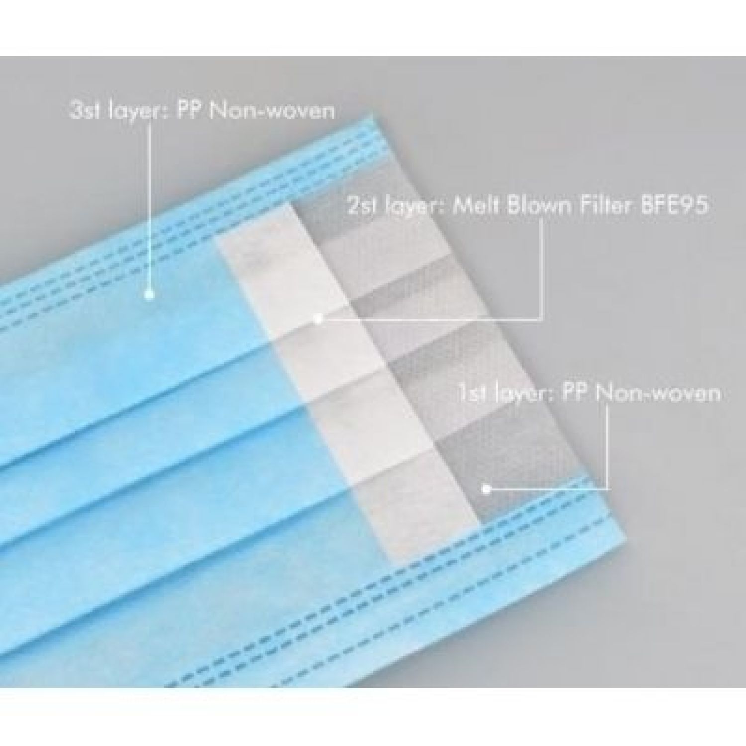 • A 3 pleat triple layer construction provides stronger support to the mask.