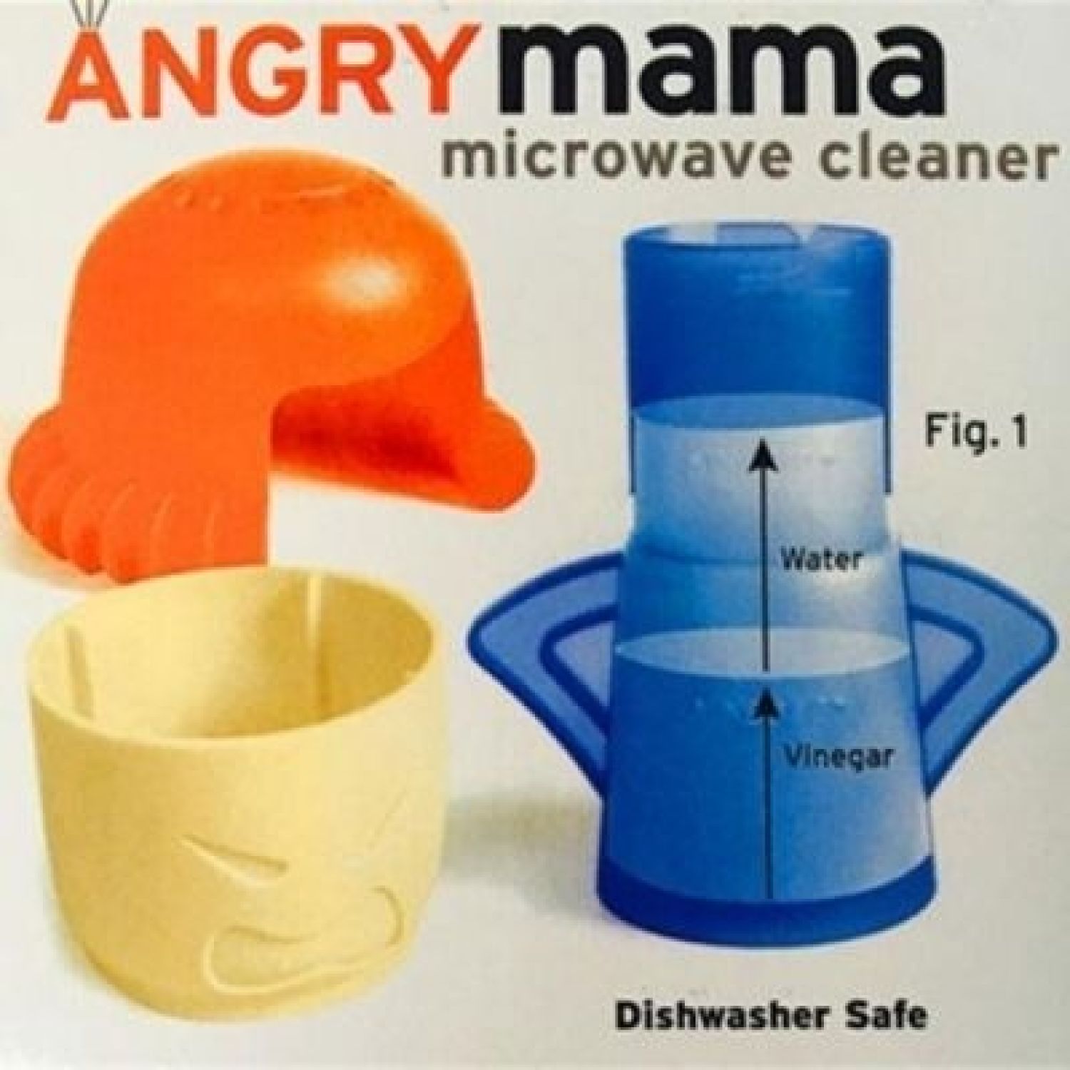 With her hands on her hips and wearing an expression that means business, Angry Mama is ready to get to work on the food crud and smelly aromas that build up in any microwave. Wearing her apron and a string of pearls, once she is filled with tap water and vinegar, she needs you to pop her inside the microwave oven, close the door and run at high power for 5 minutes. She will let off steam from the top of her head, softening dirt and stains in mere minutes, ready for an easy wipe down.