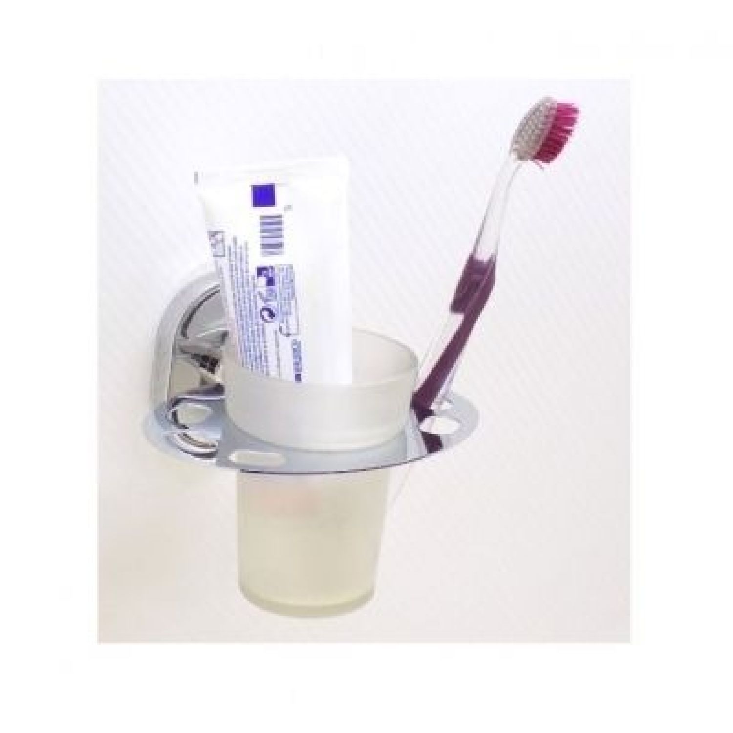 Featuring a contemporary design, the frosted glass tumbler and holder from is the perfect place to hold your toothbrush. Mounted on the wall near your basin or vanity unit, this stunning toothbrush holder has a chrome plated finish that contrasts beautifully with the frosted glass holder, for a stylish look you'll love.