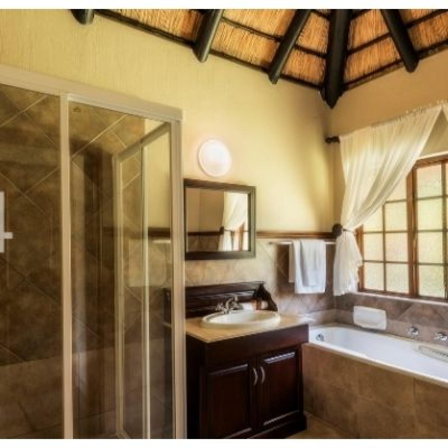 Luxury self-catering thatched holiday cottages in Central Drakensberg, all freestanding and fully self-contained with its own kitchen, dining room and living room areas, built to overlook the magnificent 18-hole championship golf course.