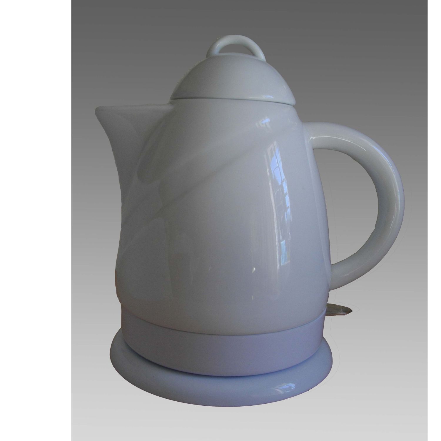 Electric Kettle, 1000W, 1.5 L, cordless, porcelain, made from the choice kaolin, fired in the 1350 Celsius kiln, gloss white glaze, the locked lid, helping to improve water quality abd benefit your health