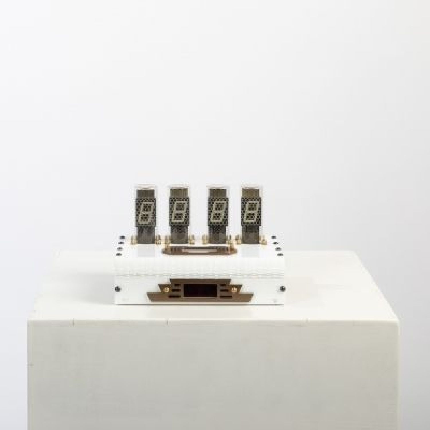 A cousin to our Roller Retro Digital Clock. A smaller white edition with elegant finishes. The clock reads minutes and hours.