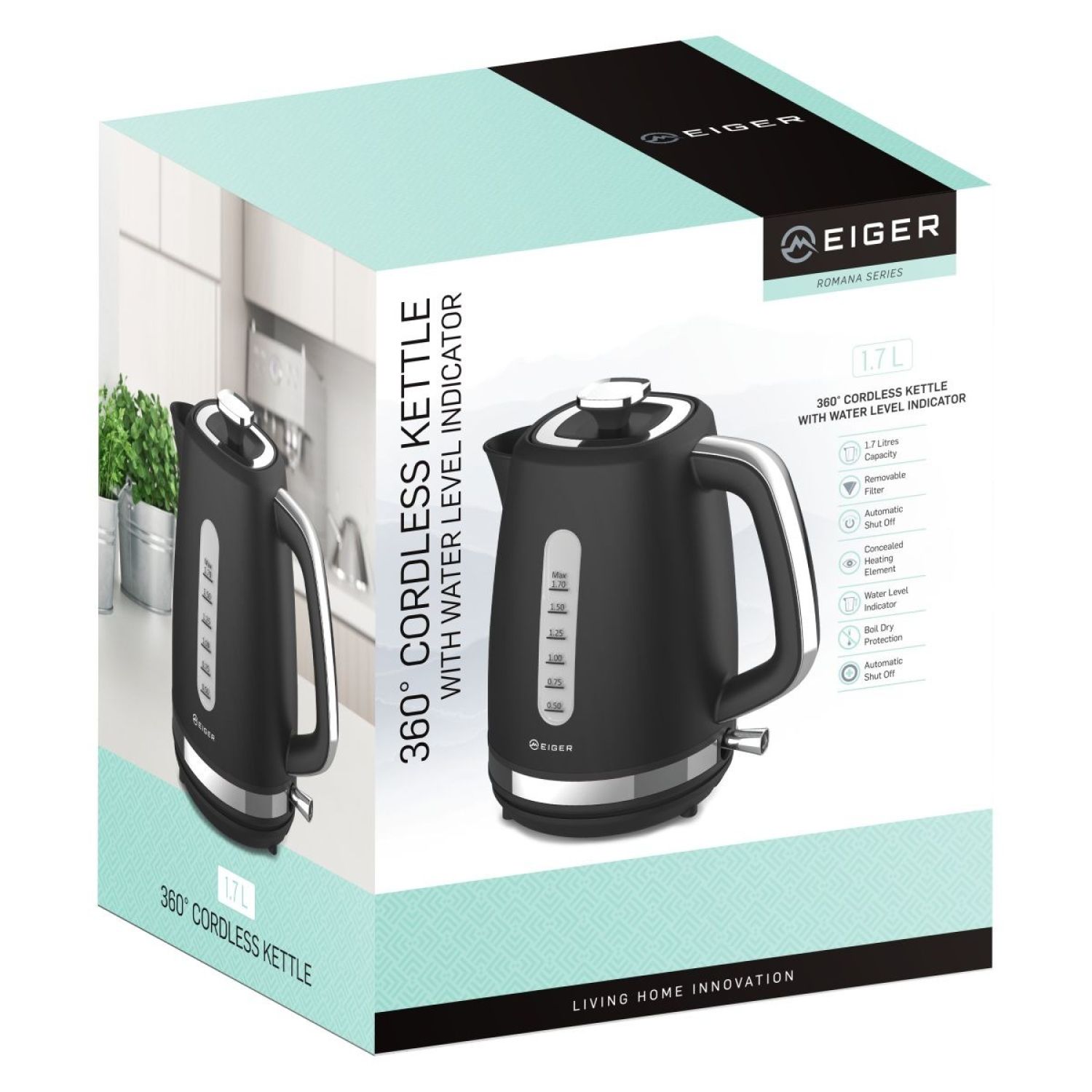 The stylish Romana Kettle from Eiger is sure to make a statement in your kitchen. Available in Black or White, the understated design will add s stylish contemporary & retro look to your kitchen, while the high-quality features ensure that the product performs to the highest international standards.