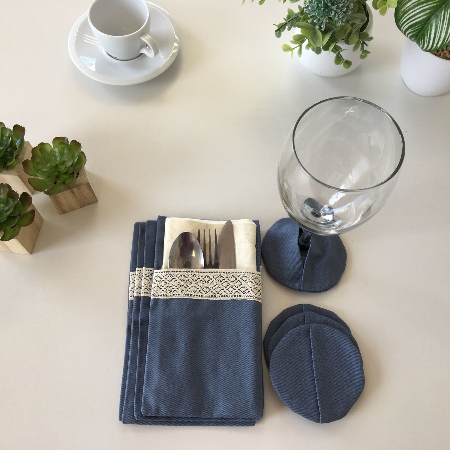 Dress the table to leave a lasting impression with Cutlery Pockets and matching coasters to improve your table setting. It is a set of four pockets that are large enough to carry a cloth napkin and cutlery set. Say No to single use disposables. Get our cutlery pockets and start dining in style today!