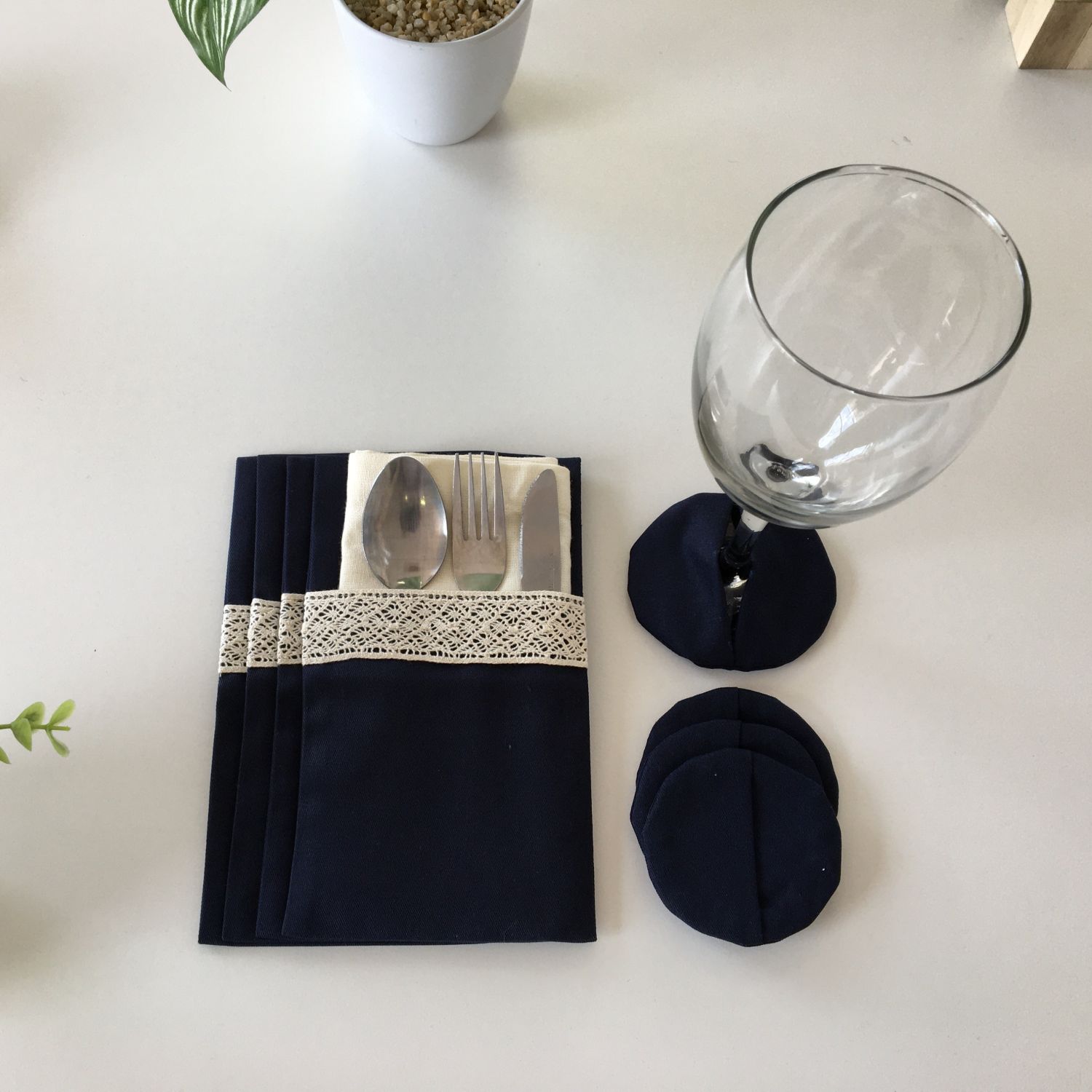 Dress the table to leave a lasting impression with Cutlery Pockets and matching coasters to improve your table setting. It is a set of four pockets that are large enough to carry a cloth napkin and cutlery set. Say No to single use disposables. Get our cutlery pockets and start dining in style today!