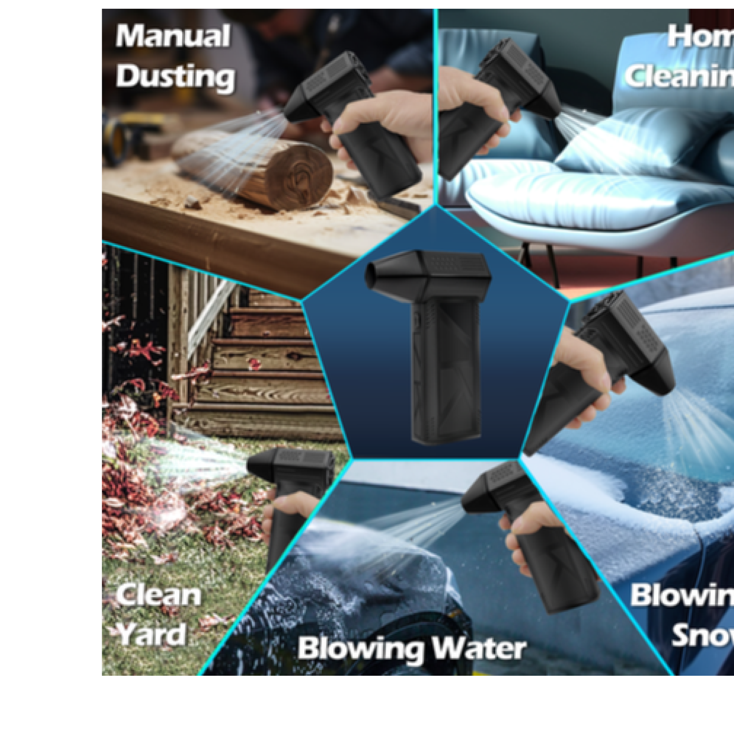 - Effortlessly maintain a dust-free environment with a compact yet powerful tool in your hand. The High-Speed Electric Air Duster Blower is not just a cleaning device; it's a versatile, eco-friendly game-changer for keeping your electronics, car, and home clean. With its portability, multiple speed settings, and fast charging capabilities, it's the perfect companion for all your cleaning needs. Embrace the convenience of this innovative product and make every cleaning task a breeze.