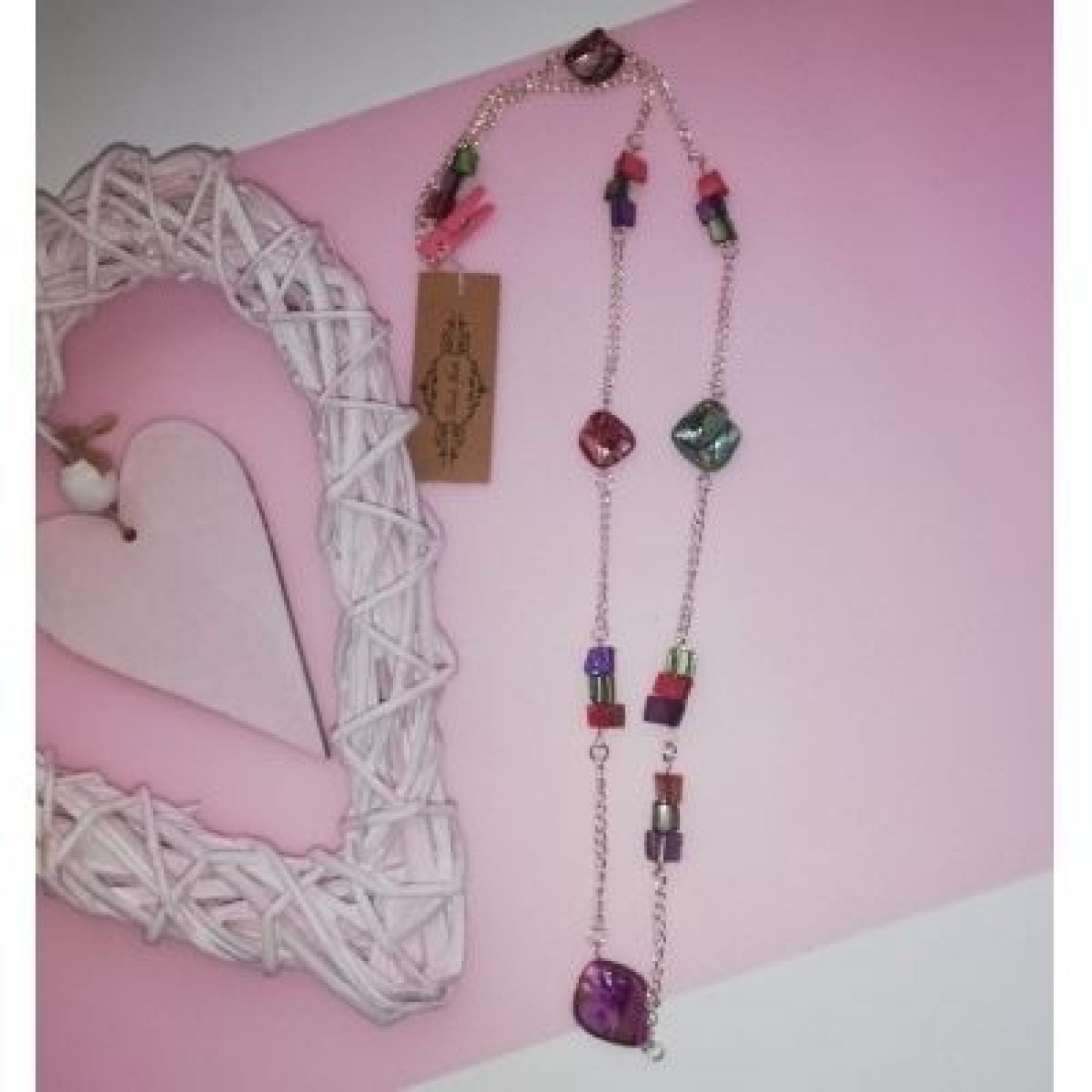 Glass Beaded Handmade Necklace composing of multi-coloured glass beads.