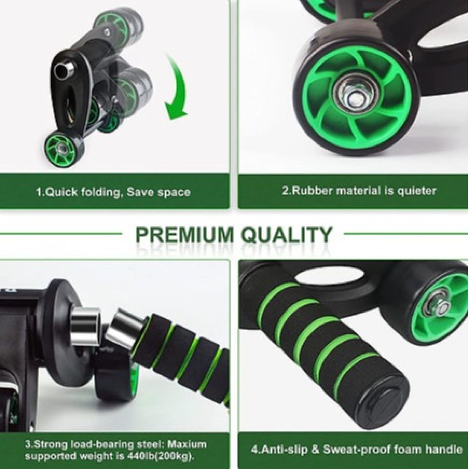 [STABLE & STURDY] - Innovative 4-Wheels and triangle main frame design enhance the stability of the ab wheel, as it does not deviate left and right, avoiding unnecessary injuries. The thickened steel tube and premium quality of the frame make the home gym equipment more sturdy (holding up to 440lb).