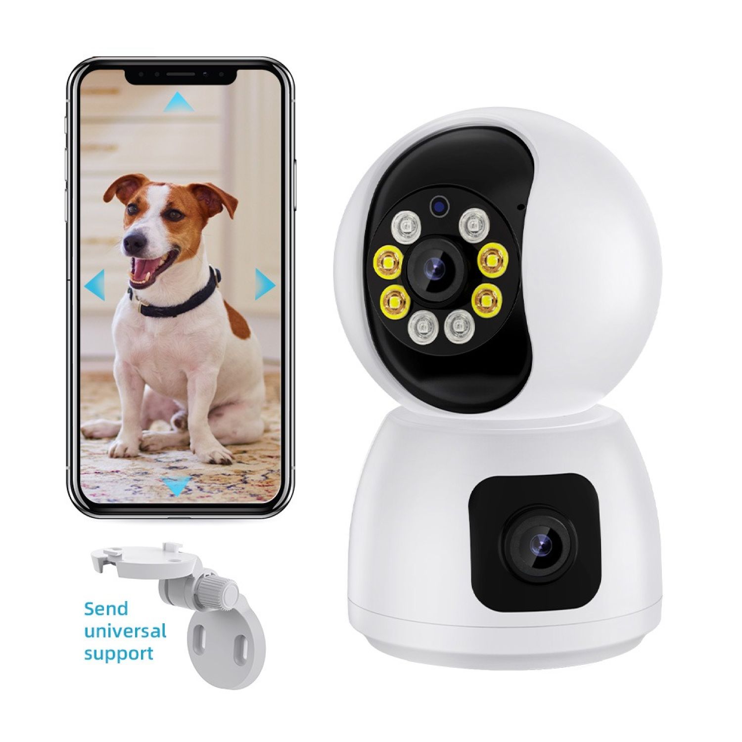 HD Wifi Dual Lens(2MP & 2MP) Camera Night Vision SD card and cloud recording capability Multiple User access Monitoring via App from anywhere Smart Alert with LED light 2-way Audio Lan port cable Easy to set up