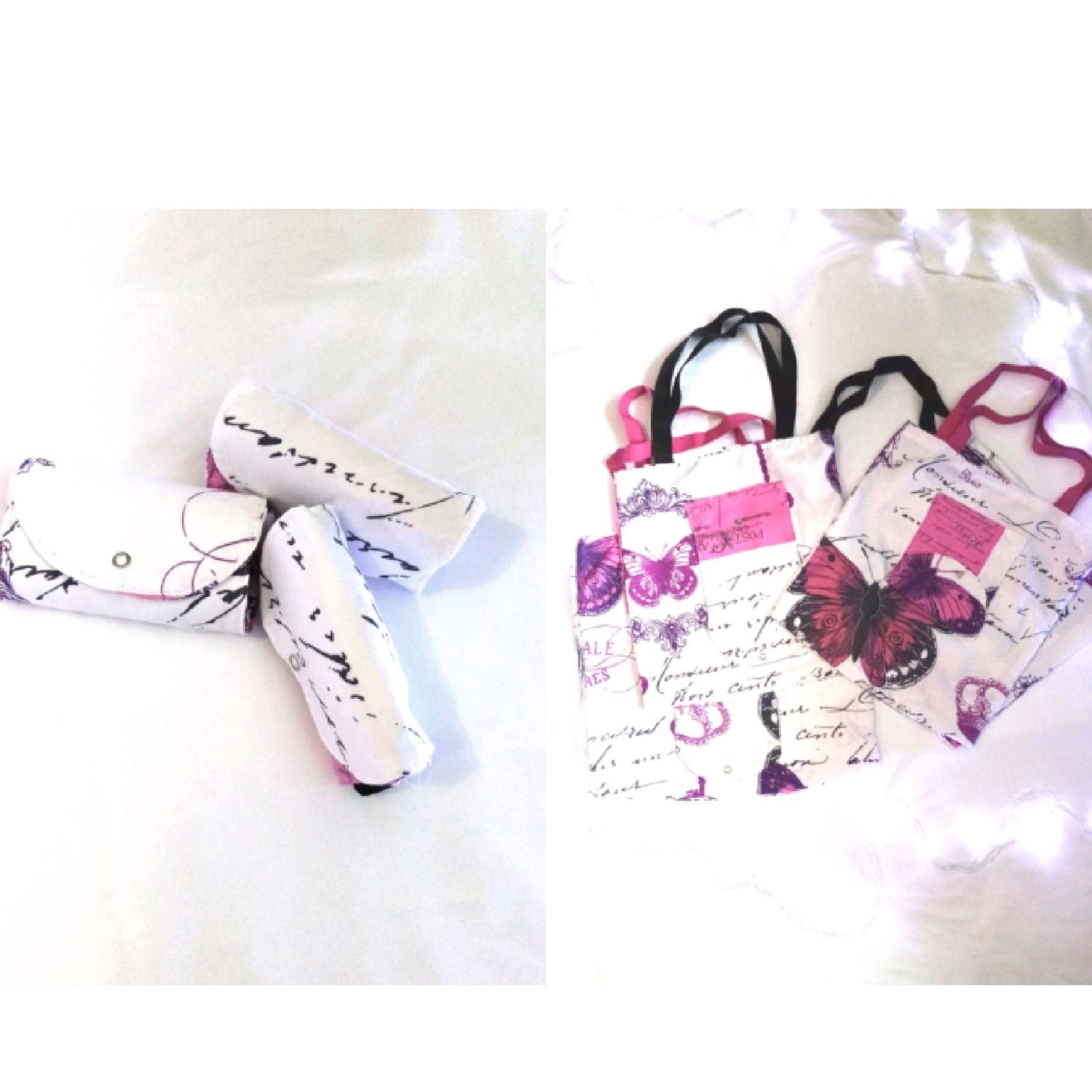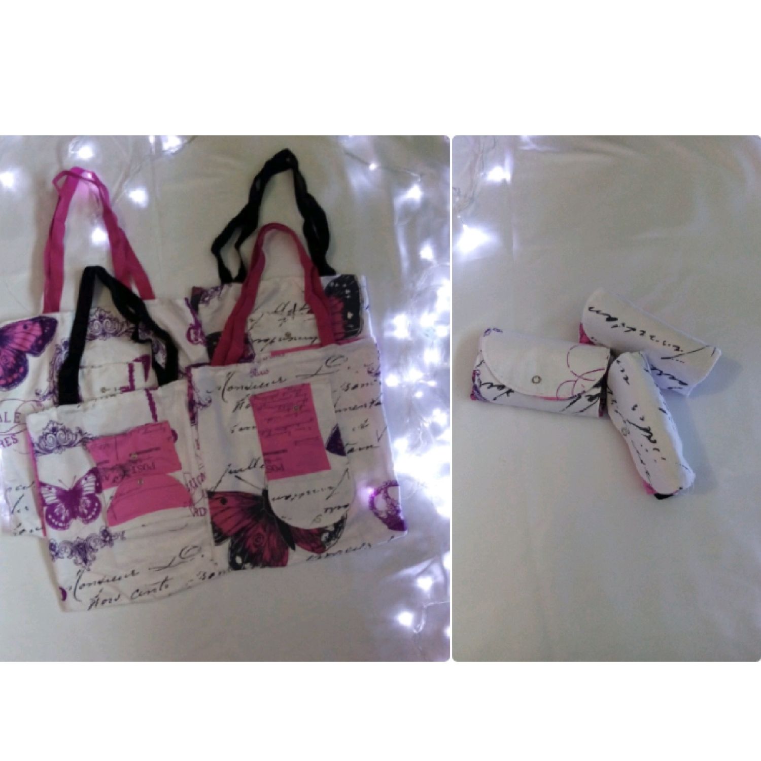 X4 foldable bags made from cotton polyester fabric. Size 37x36. Strong enough to carry groceries and books. Easily foldable.