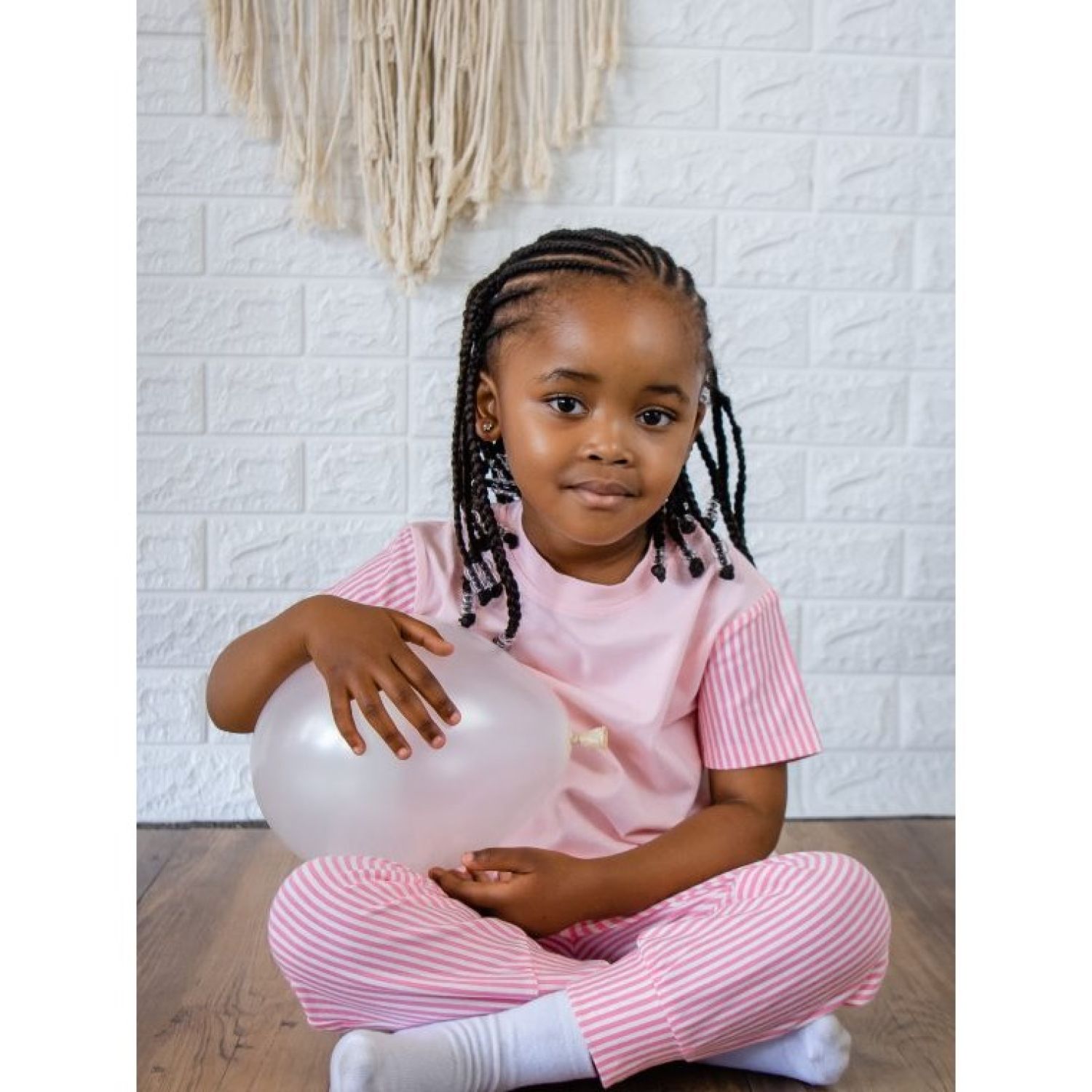 The kiddozwear candy pink Pijama set has an elegant look with the striped sleeves matching the pants,also made with high quality fabrics this outfit is made for comfort