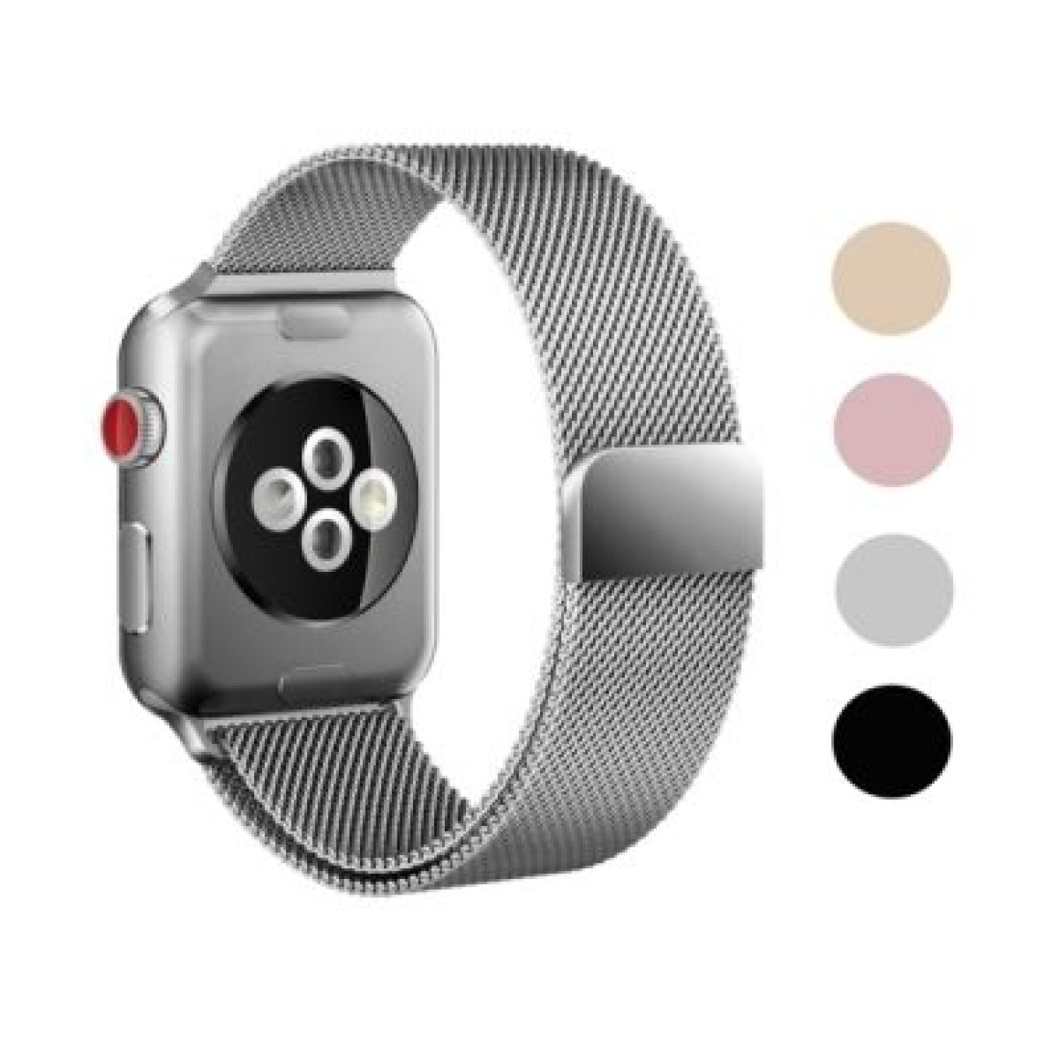 Woven 316L stainless steel mesh with adjustable magnetic closure for Apple Watch.