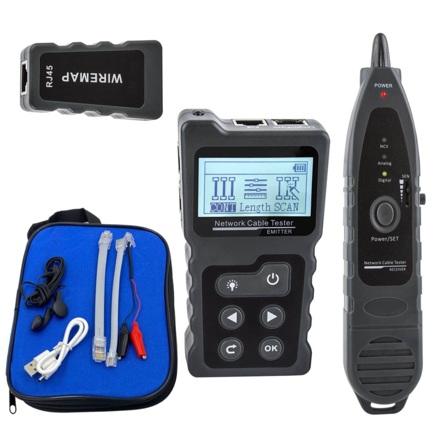 Advanced Network Cable Tracker Tone Generator and Probe Kit with Cable Testing Capabilities like Wiremap, Length, PoE