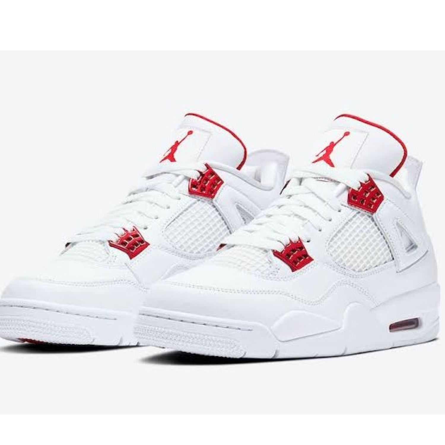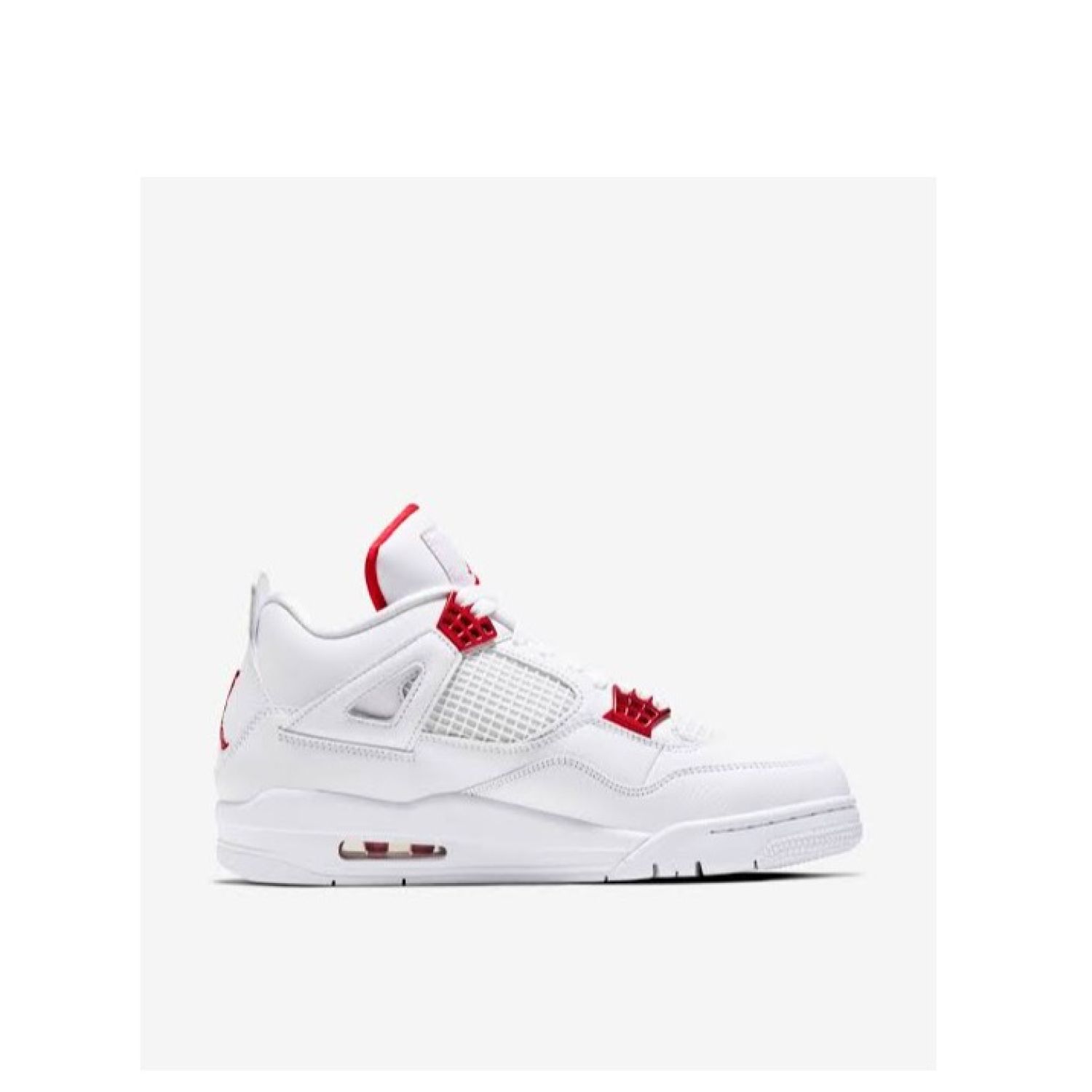 Bright and bold. These Air Jordan 4 Retro Sneakers from Jordan are the perfect amount of flash for everyday wear. Crafted from white leather, the high-top pair of Jordan's signature. Sneakers are finished with eye-catching team red and metallic trims for added detail.
