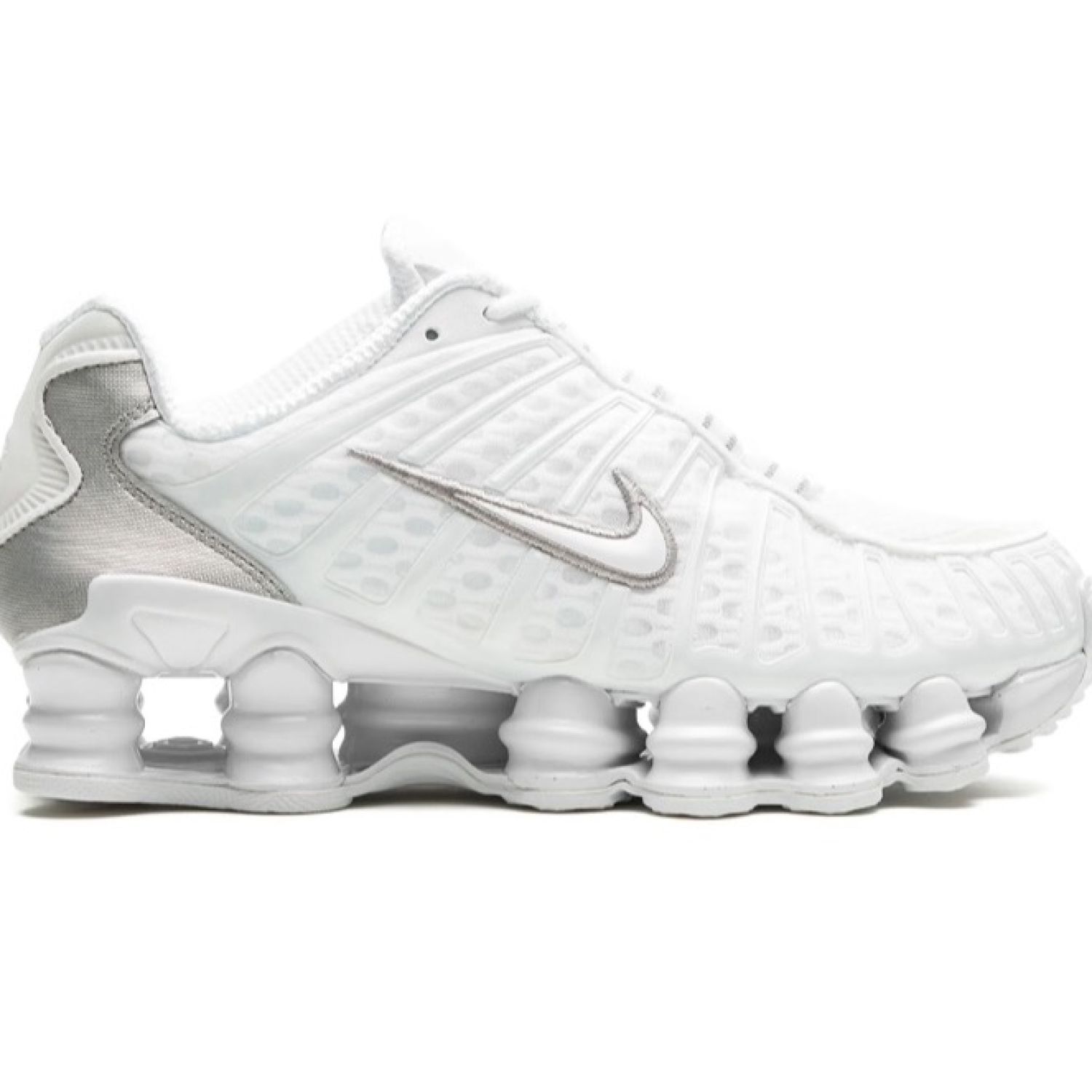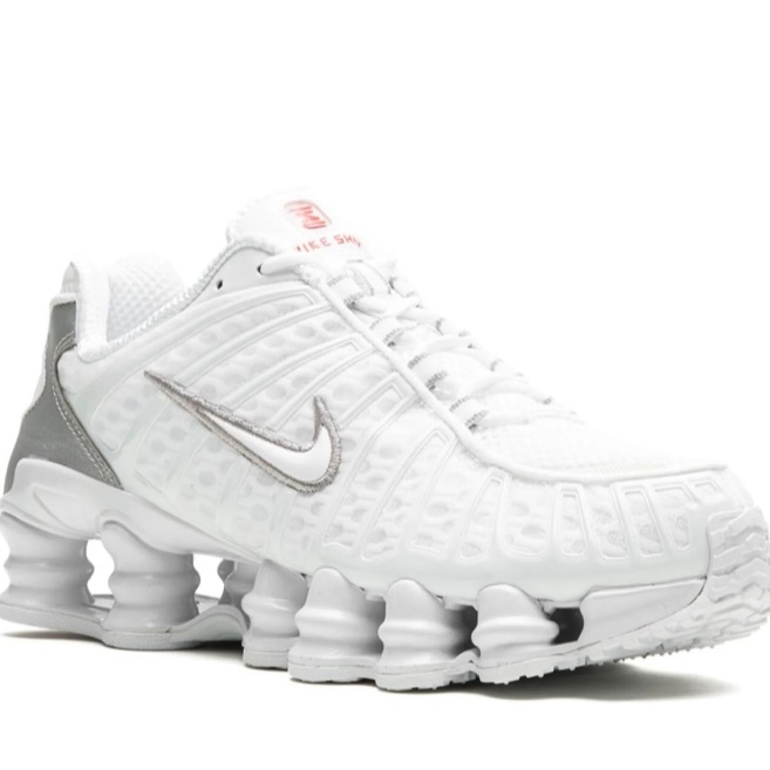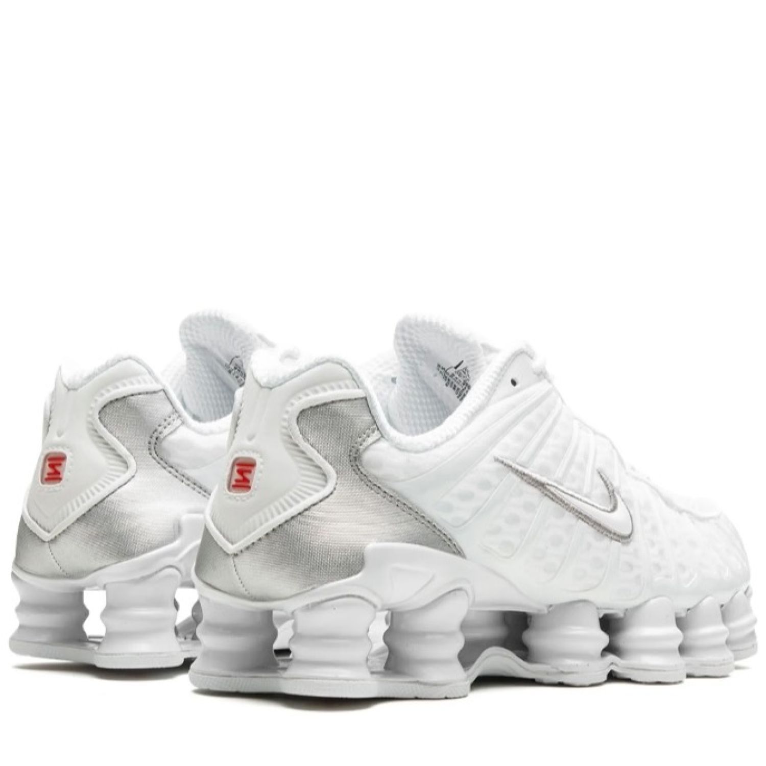 Elevate your look with the Nike Shox TL in White with Metallic Silver accents. Featuring the signature Shox cushioning for responsive comfort and a sleek, modern design, these sneakers deliver style and performance for everyday wear or workouts. Perfect for those who want both comfort and flair