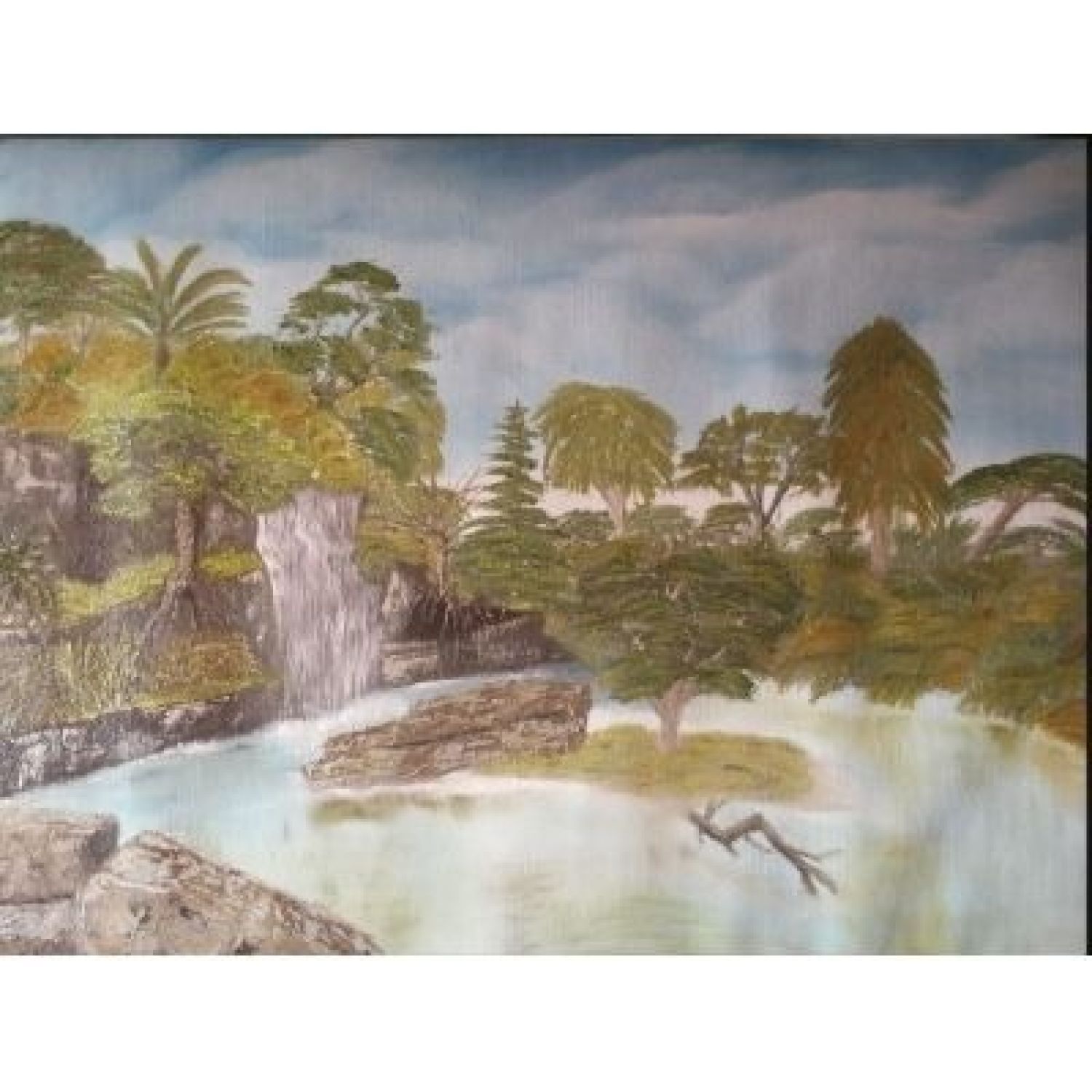 This original oil painting is the prize you get from a long days walk through the forest. It is an Idyllic oasis where you can offload and camp out for the night to rejuvenate for the next days travel.