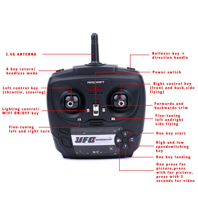 With WiFi function, so you can watch the live video on your phone or use your phone to control the drone.