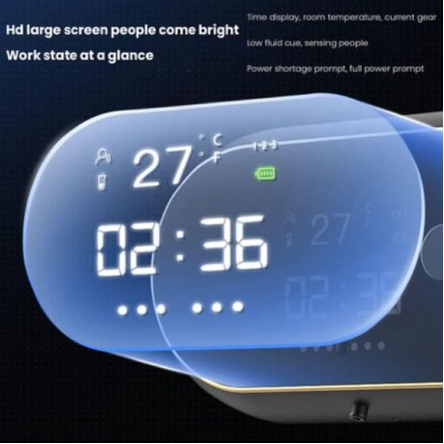 • Real-Time Monitoring: Displays time, indoor temperature, gear levels, and alerts for low liquid levels, power shortages, and full battery status.