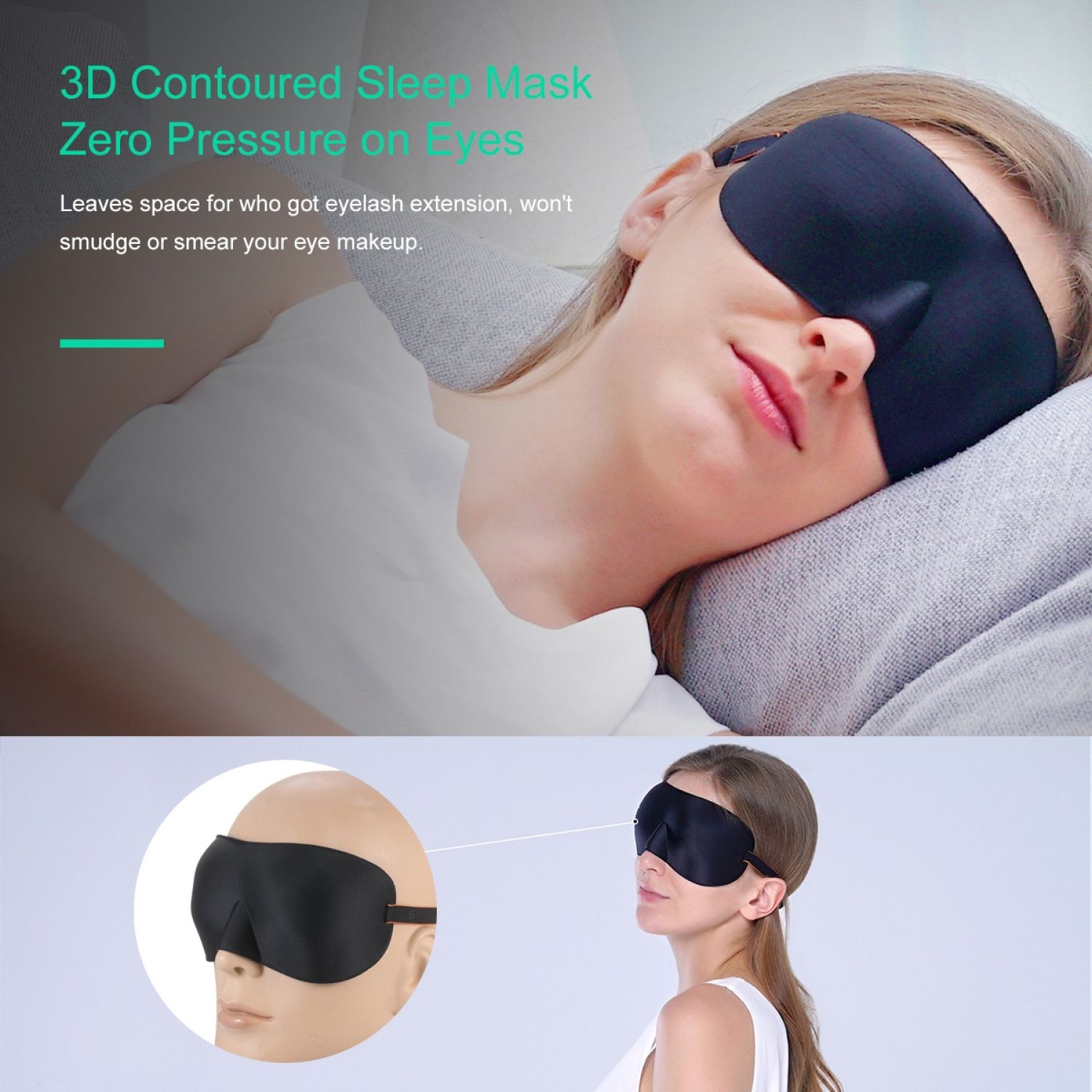 Ergonomic Eye Mask - 3D contoured sleep mask won't add pressure on your eyes, and it leaves space for who got eyelash extension, won't smudge or smear your eye makeup, extremely comfortable to wear it to get a good sleep.