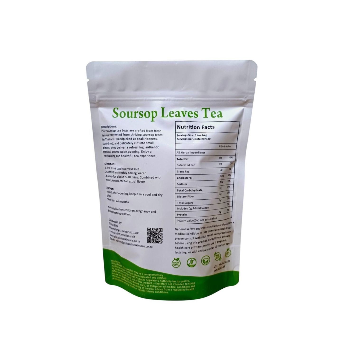 Our soursop tea bags are crafted from fresh leaves harvested from thriving soursop trees in Thailand. Handpicked at peak ripeness, sun-dried, and delicately cut into small pieces, they deliver a refreshing, authentic tropical aroma upon opening. Enjoy a revitalizing and healthful tea experience
