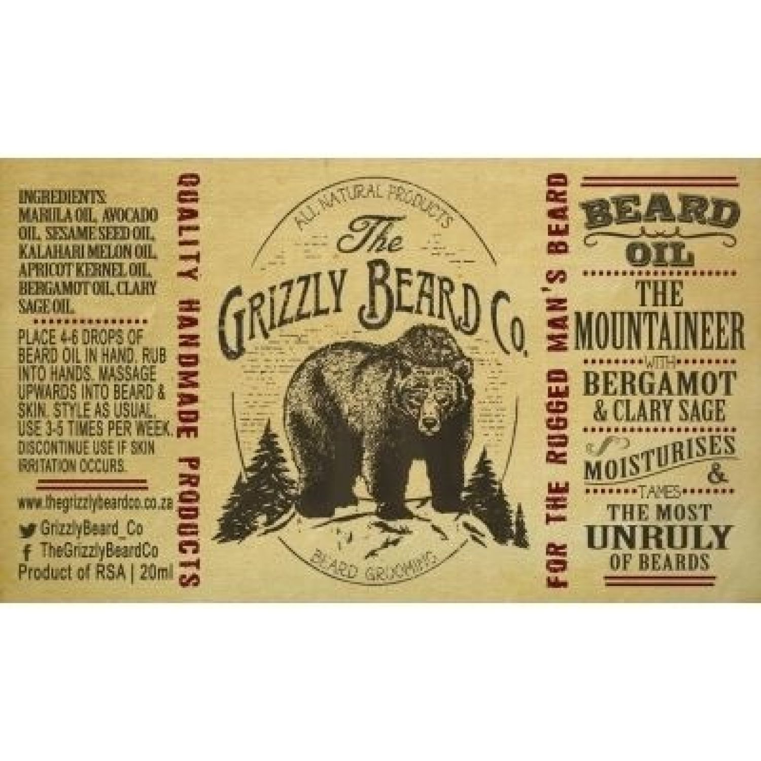 The Mountaineer Beard Oil with Bergamot & Clary Sage is produced from 100% natural cold pressed and essential oils.