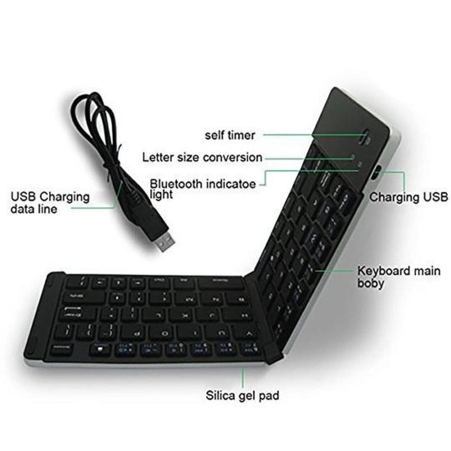 1)A wireless keyboard with Bluetooth, for more comfortable and free typewriting. 2)flexible and ultra-thin, free to fold, easy to carry, or into your pocket.