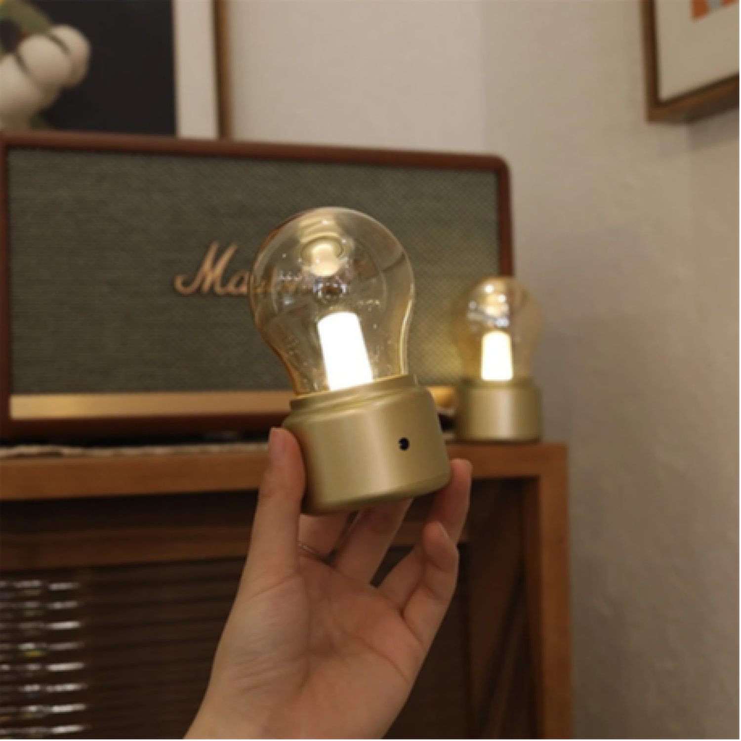 - Retro Design: Features a metallic bulb-like design that blends vintage charm with contemporary style, enhancing any room's decor.