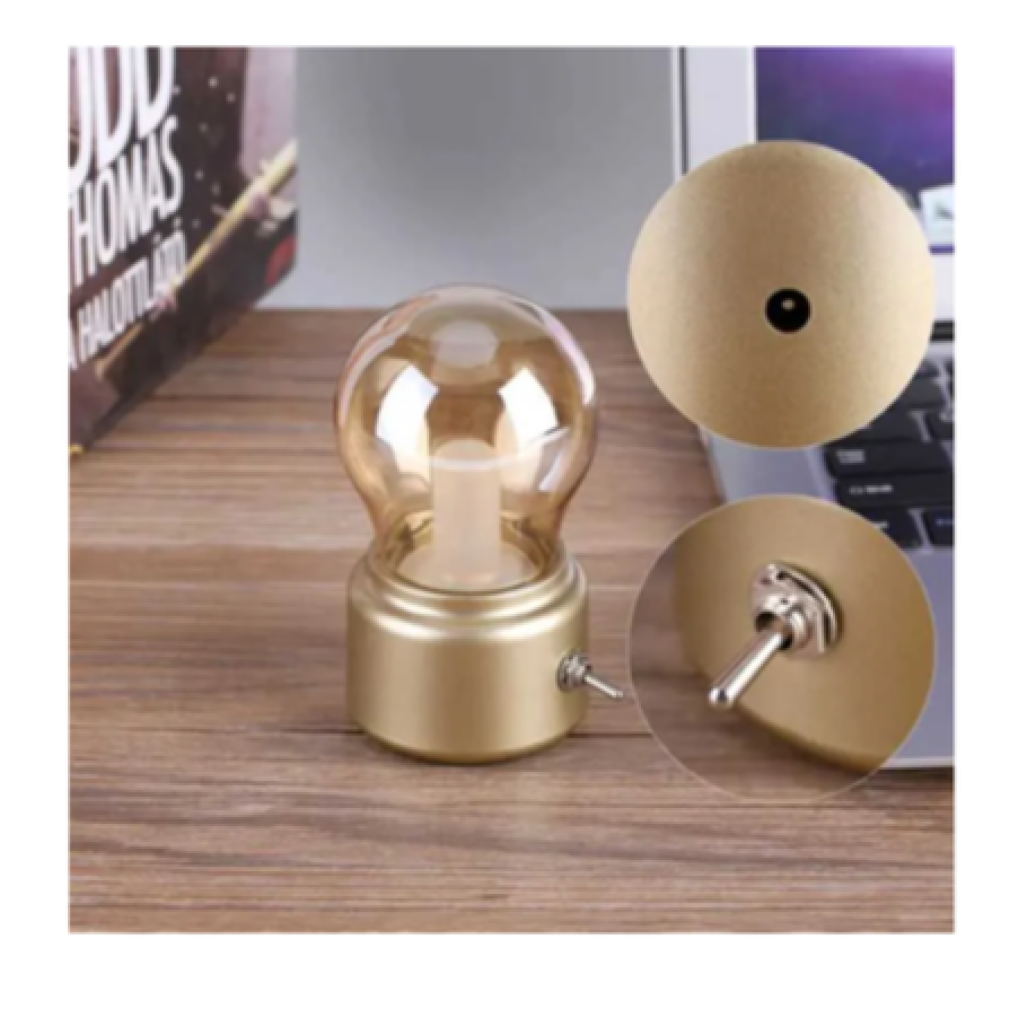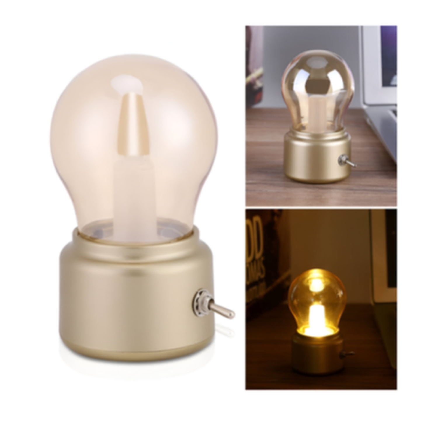 The Retro LED Desk Lamp combines a nostalgic aesthetic with modern functionality, making it an ideal addition to any home, office, or outdoor setting. This USB rechargeable desk lamp features a metallic-textured bulb design that emits soft, warm light to create a cozy and romantic atmosphere. Designed with durability and portability in mind, this energy-efficient lamp is perfect for use as a bedside light, decorative piece, or travel companion.