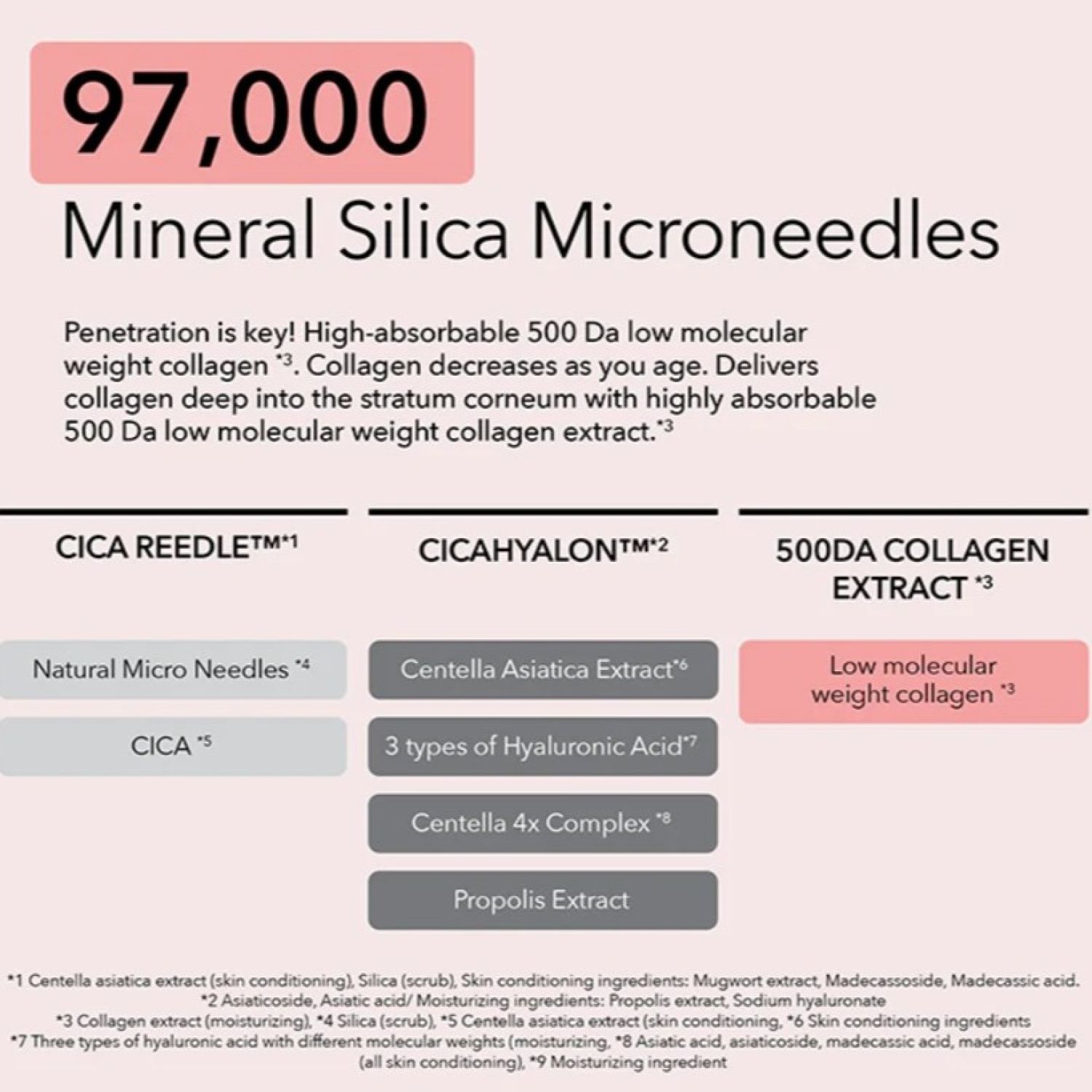 Collagen Reedle Shot 100 is a specialized serum enriched with 500Da low molecular weight collagen to enhance skin firmness and volume. It contains 97,000 CICA REEDLE particles that function like microneedles—14 times finer than pores—promoting deeper absorption and gently stimulating the skin for a smoother texture. Designed for daily use as part of the DAILY FIRMING CYCLE, this collagen reedle shot supports skin plumping and firming effectively.