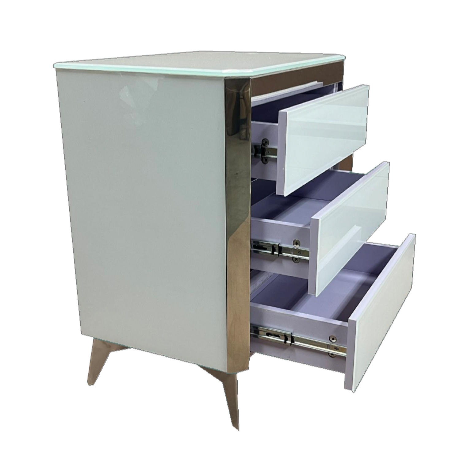 GLASS FINISHED 3 DRAWER SIDE STAND