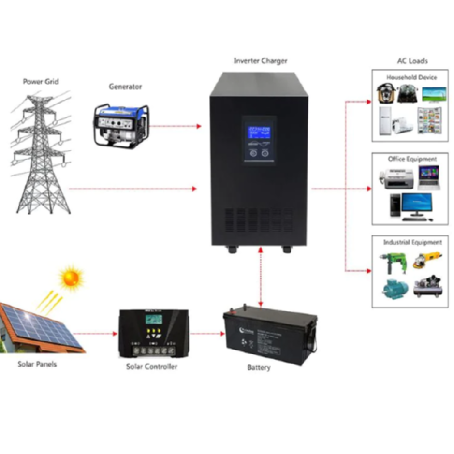 Built in 30A Solar Charge Controller (Solar panels can be added up to 30A 450W)