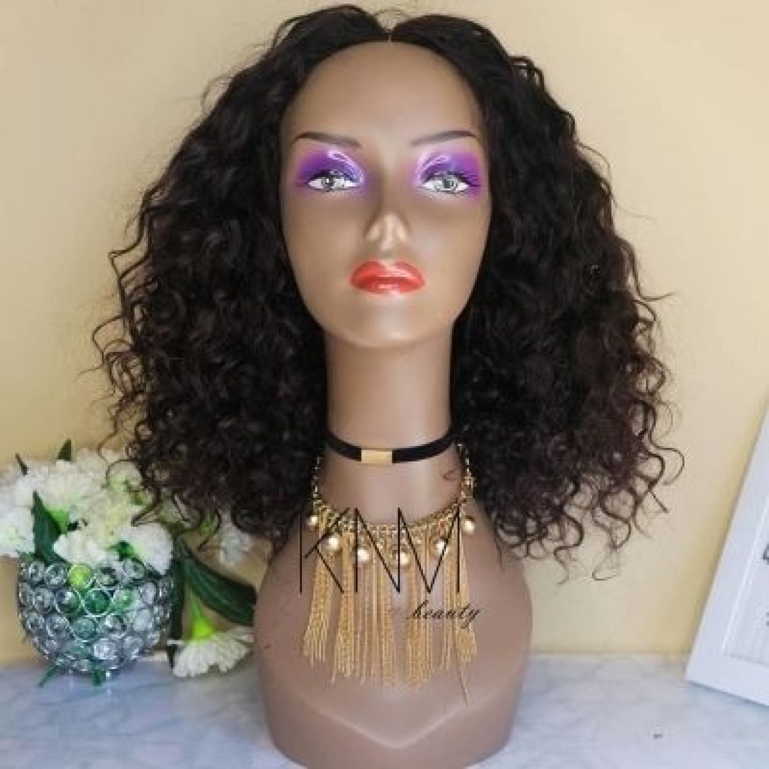 12” Malaysian Curly Hand Made Closure Wig In Natural Colour #1B
