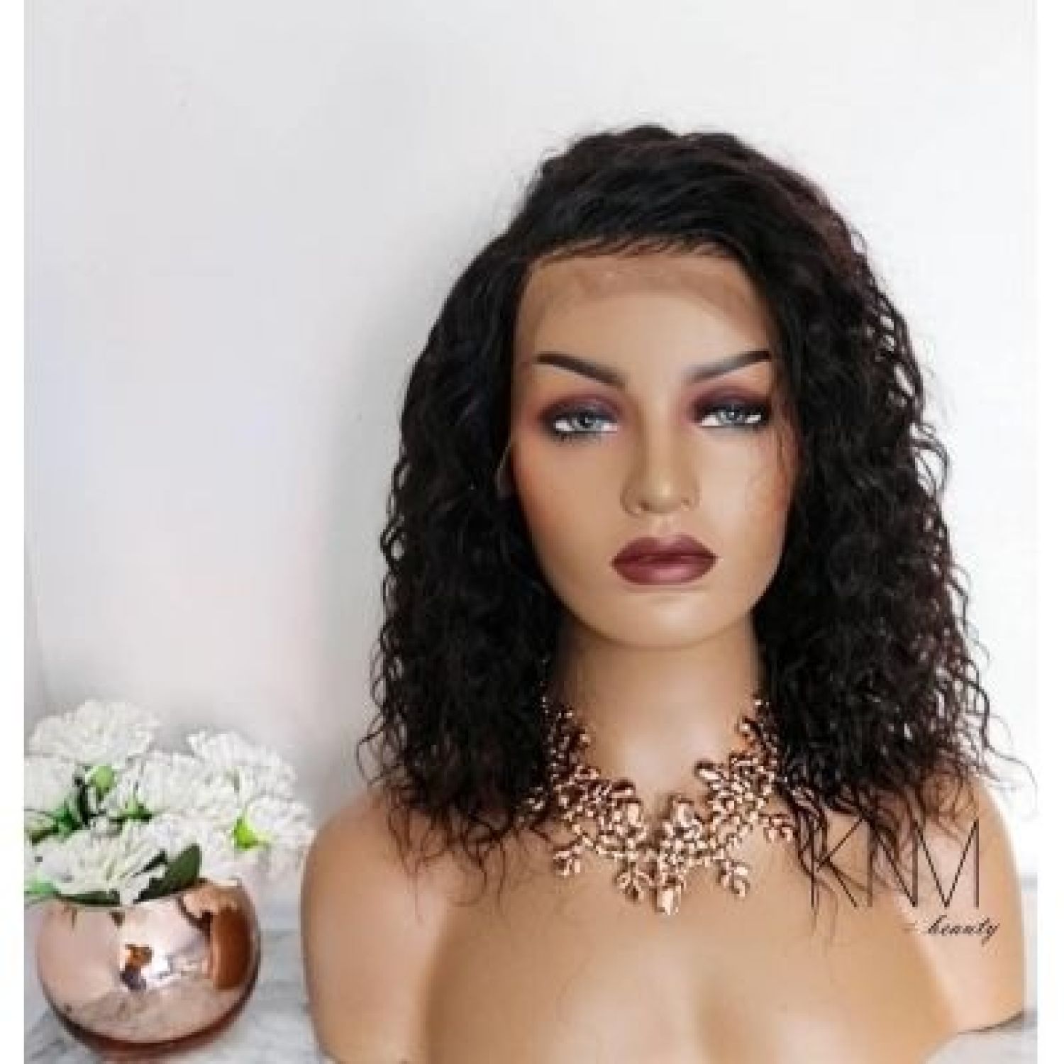12” Malaysian French Curly Hand Made Lacefront Wig In Natural Colour #1B