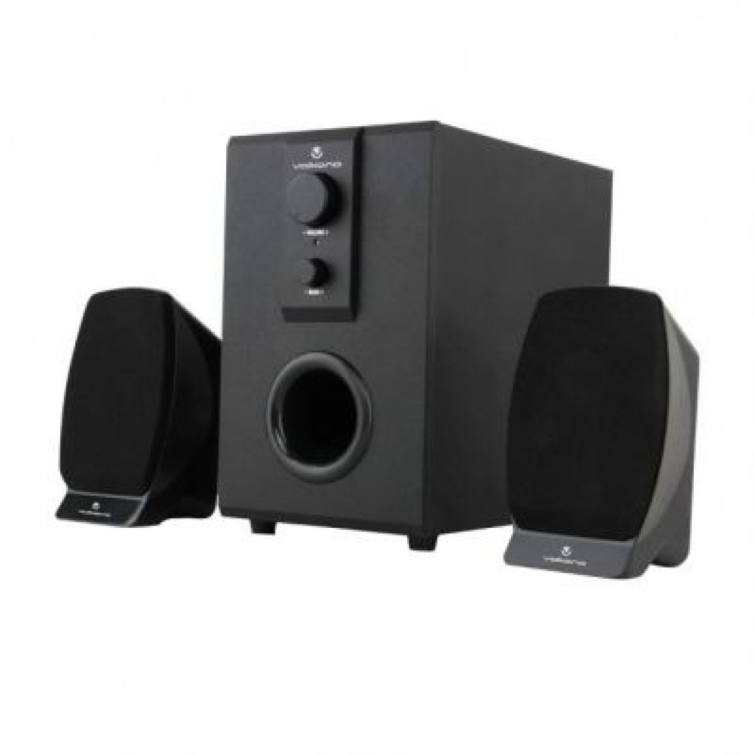Volkano Meteor Series 2.1 Speaker System Sub-woofer: Output power: 8 Watts RMS Driver unit: 4” full range sub-woofer Active crossover Impedance: 6 Satellites: Output power: 3 Watts RMS each Driver unit: 3 inch Frequency response: 80Hz-20KHz Impedance: 4 each S/N Ratio: 65dB Distortion: 1% Compatibility: Mobile phones. Tablets. Computers. Audio systems with a 3.5mm output Sub-woofer: Output power: 8 Watts RMS Satellites: Output power: 3 Watts RMS each Compatibility: Mobile phones. Tablets. Computers. Audio systems with a 3.5mm output