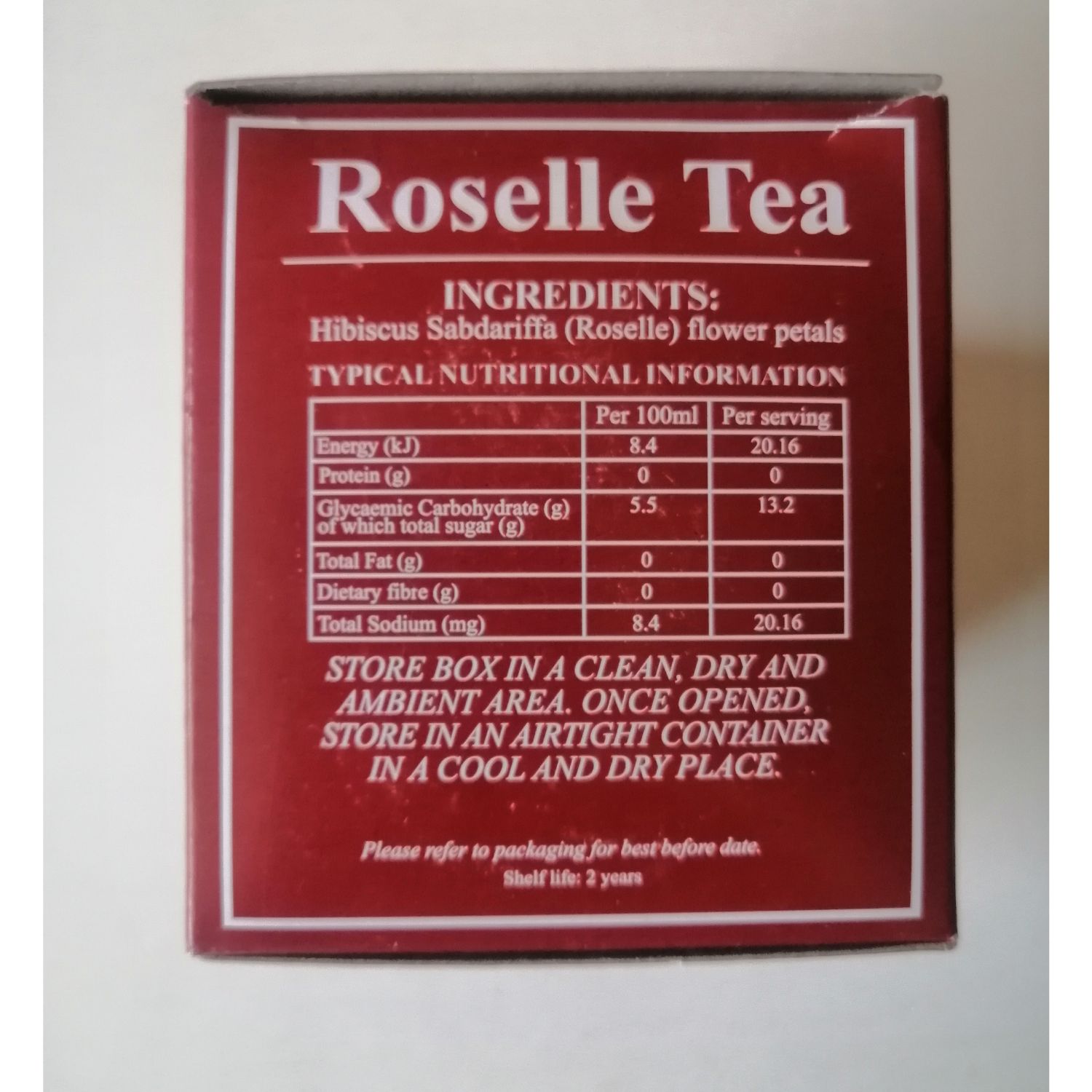 Roselle Tea is primarily made from Hibiscus Sabdariffa flower petals that have a rich red colour. It is very high in Vitamin C and is caffeine free. The taste is tart and fragrant. Can be enjoyed hot or cold.