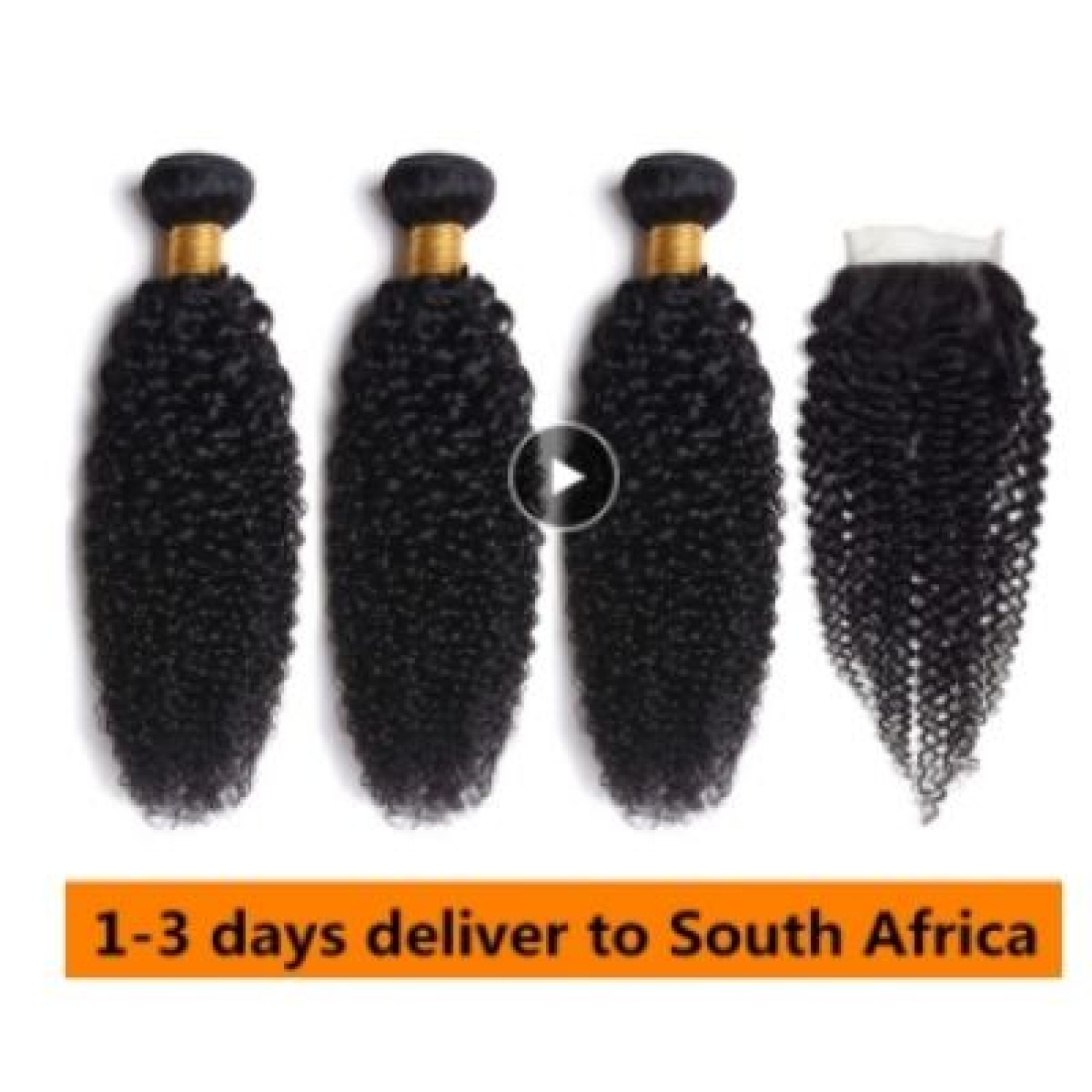 20 inches Brazilian Hair Bundles With Closure Kinky Curly 3 Bundles With 4*4 Closure 100% Human Hair Remy Hair Extensions