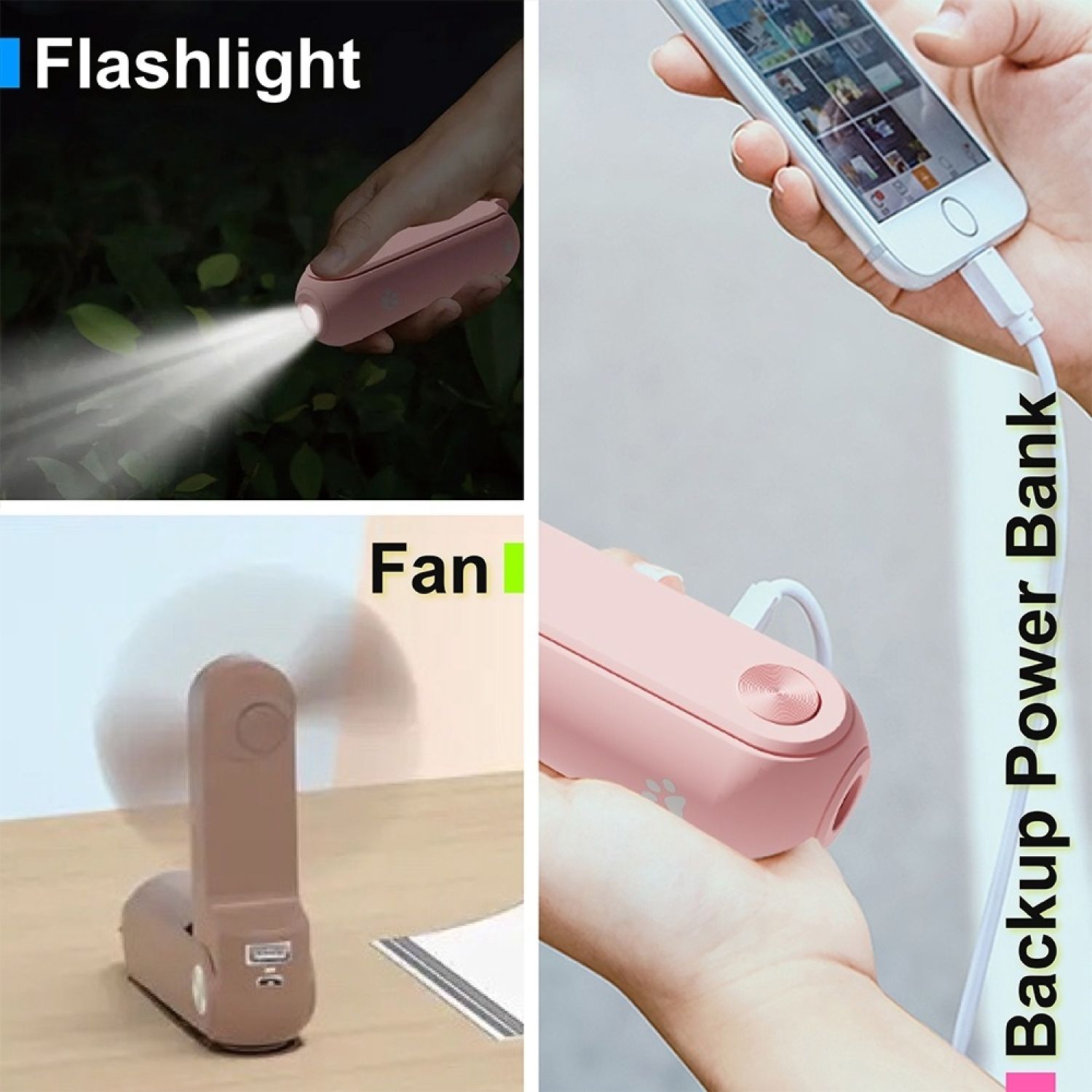 Multifunctional: This handheld fan can be used as a power bank, to recharge your phone or tablet anytime and anywhere. It also has a flashlight function that is bright enough to illuminate up to 8-10 meters in the dark, making it a useful tool during camping trips or power outages.