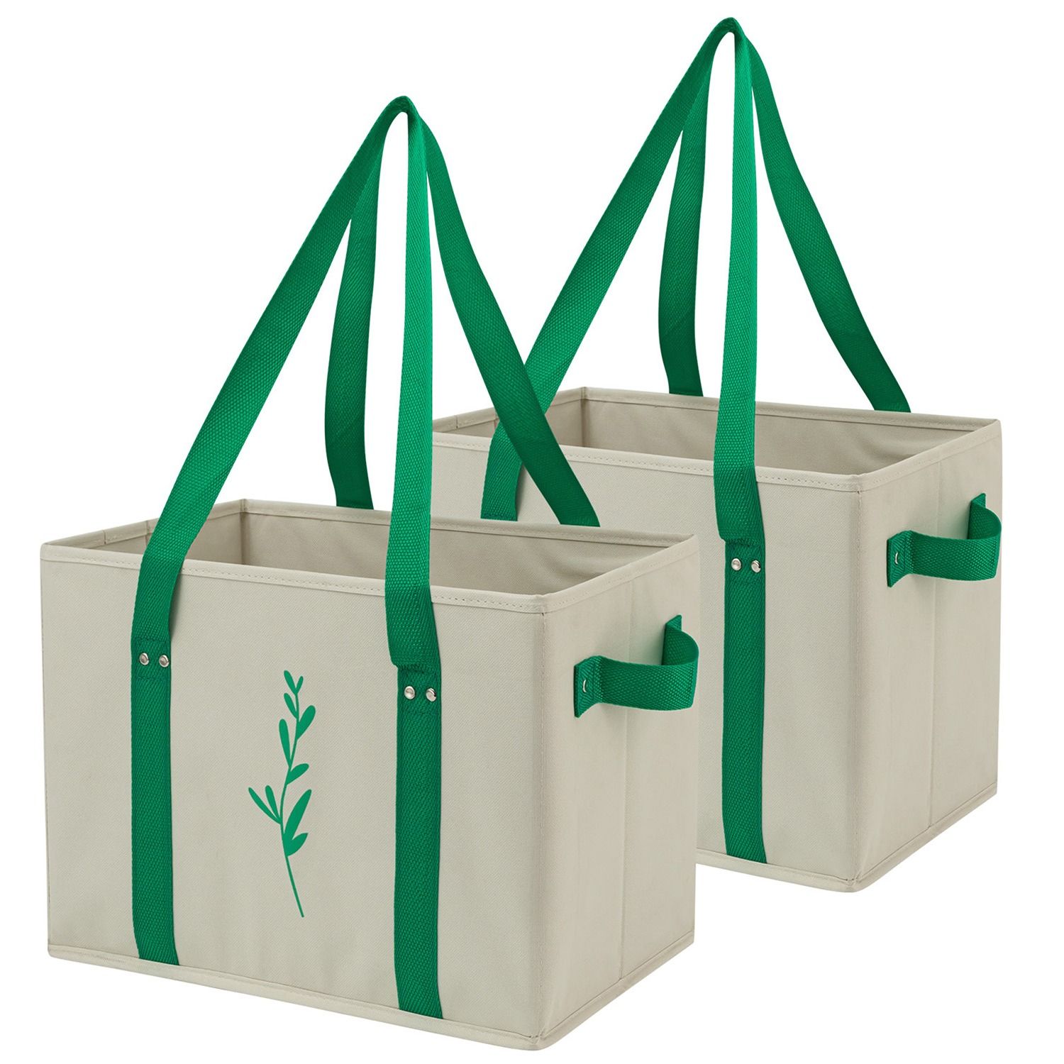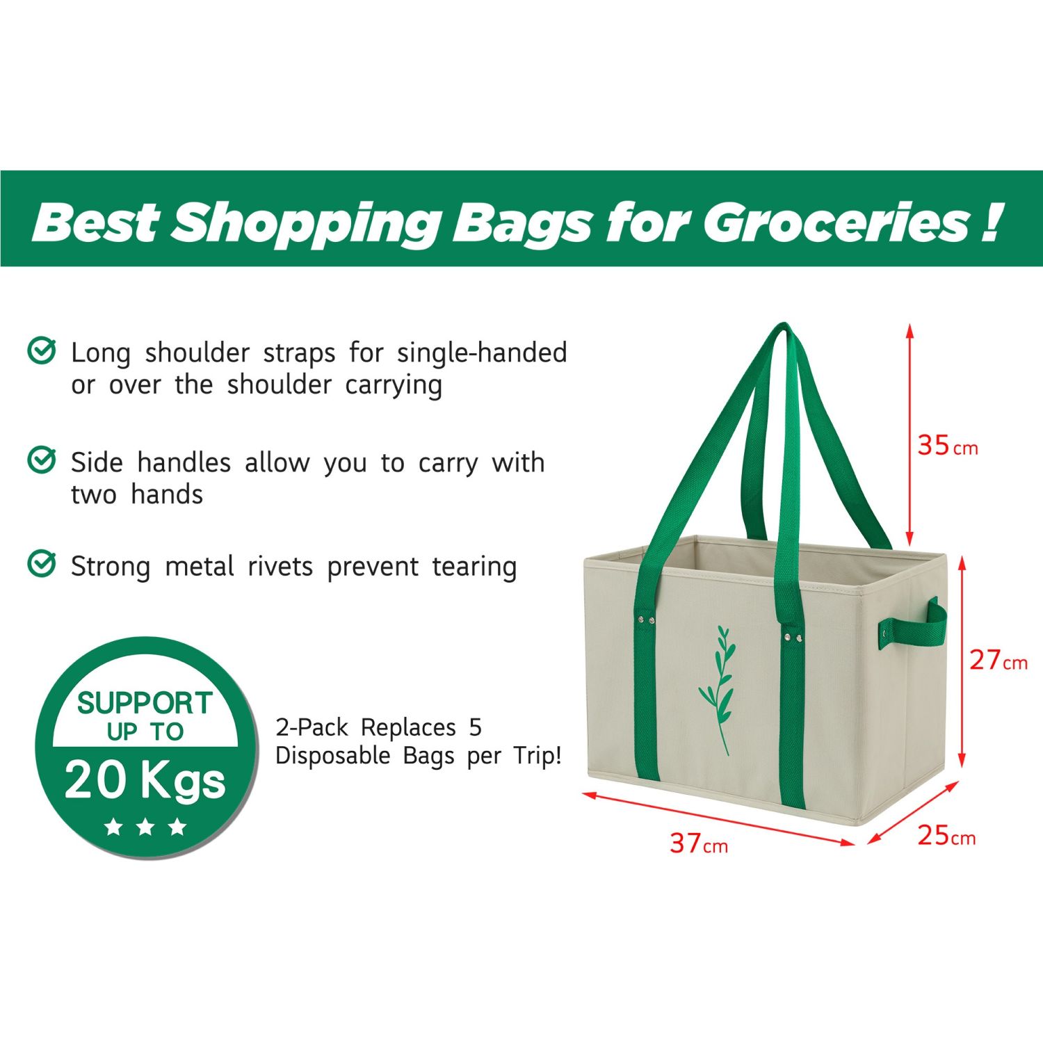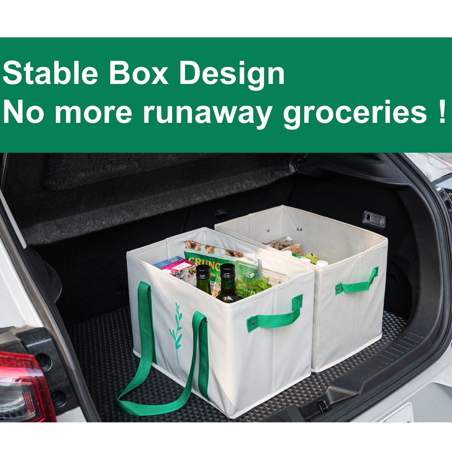 Makes shopping easy: with a rigid box structure, our reusable grocery bags stand up and stay open - super easy to load and unload compared to ordinary floppy reusable bags - long handles let you easily carry tall items or sling over your shoulder, while side handles allows you to carry with two hands from one location to another.