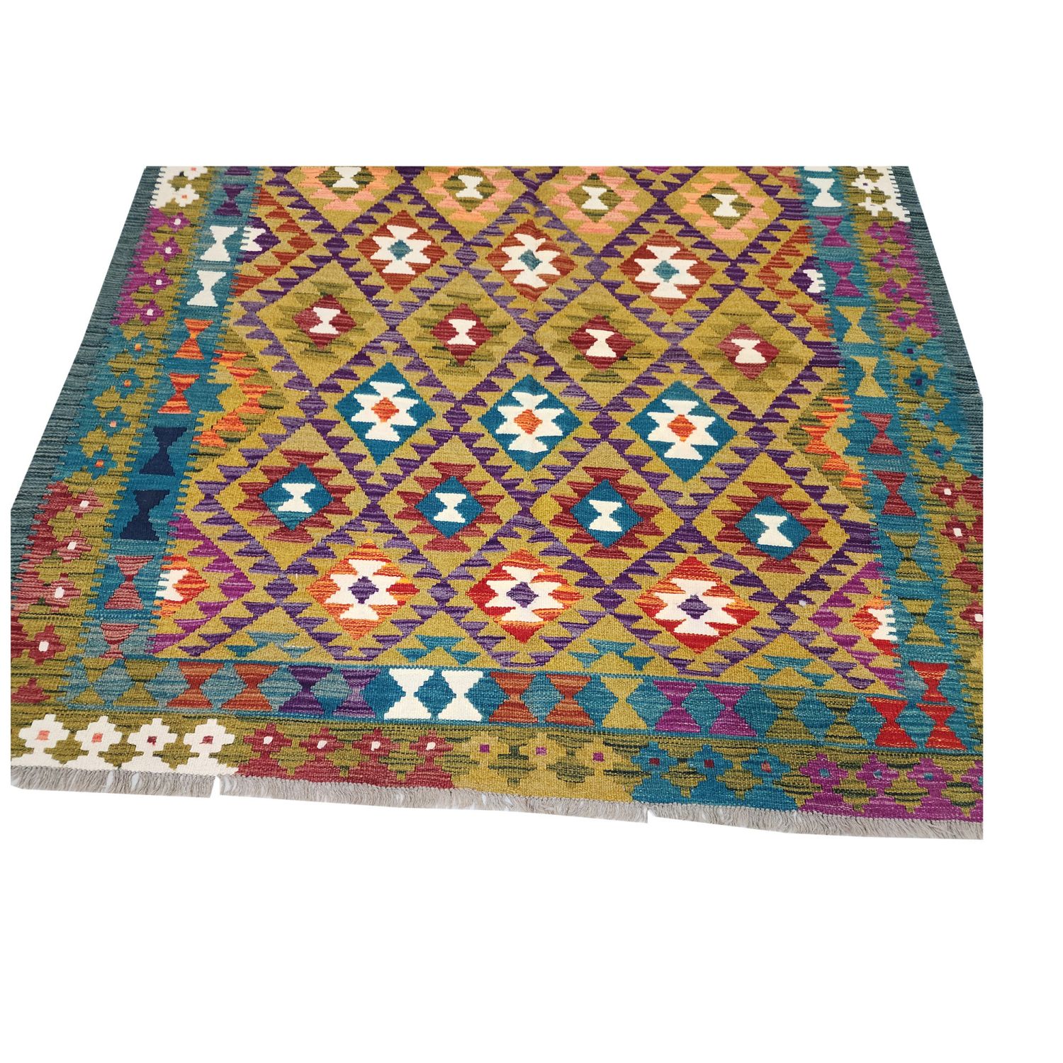 This fine quality multi colored Kilim is coming from City of Maimana, Afghanistan.