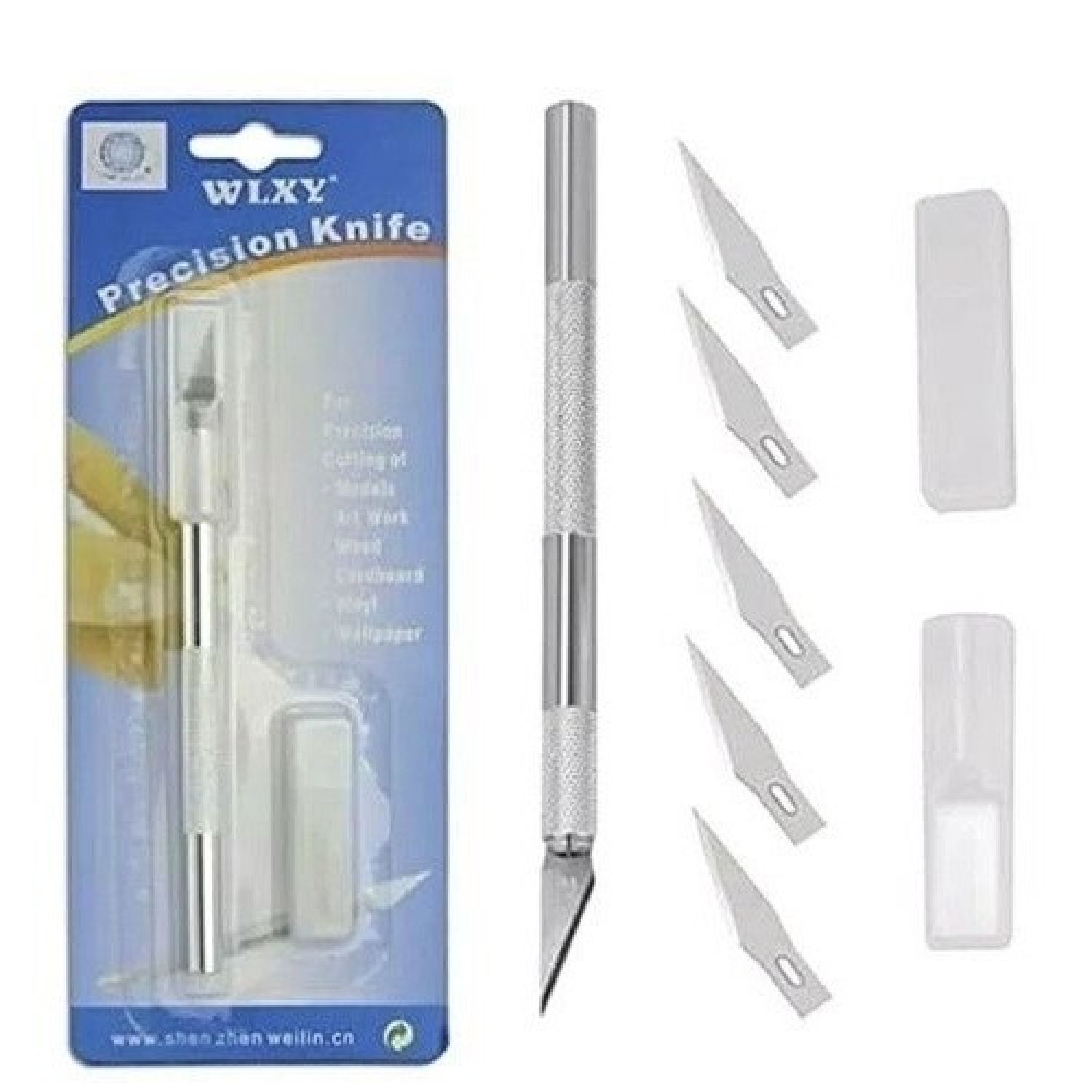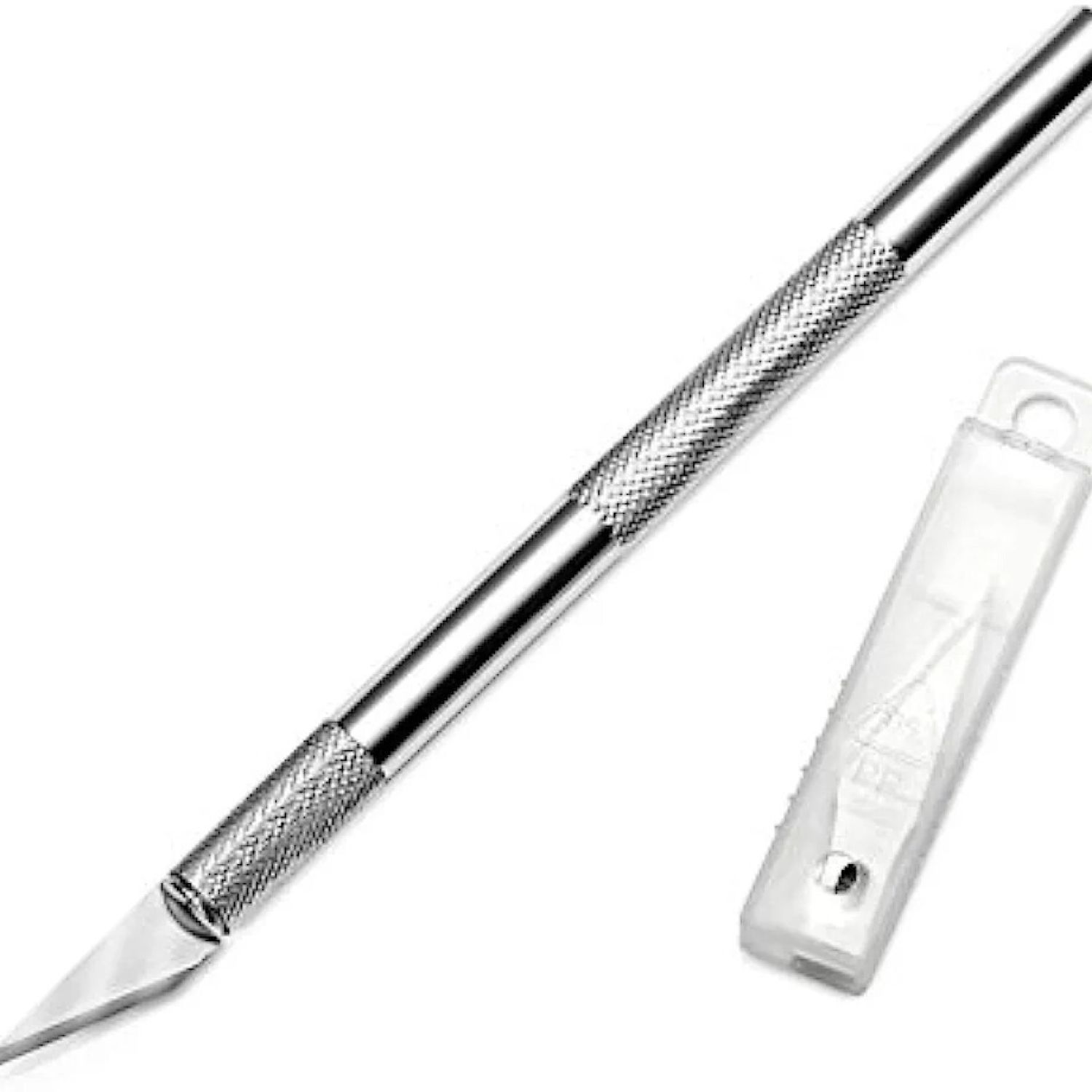 Ideal for cutting intricate details on paper, cloth, cardboard, thermocol, plastic, wood carvings, fabric, leather, overlays and other lightweight crafting materials. Grip touch point provides control and comfortable use while reducing hand fatigue.5 premium interchangeable sharp blades replacement blades in one package, this set is ideal for the crafter who needs an easy-to-control knife and a constant supply of sharp blades for multiple projects.The blades comes with a safety cap and protects the blade during storage. An easy-interchange sharp blades system allows you to replace blades quickly and safely. The blades is very sharp, please be careful when using it and while replacing it.The detail pen knife set is rich and can achieve almost every aspect of your project. Suitable for DIY Art and Craft and Hobbies. Package contains Qatalitic Detail Pen Knife Set with 5 Interchangeable Sharp Blades.