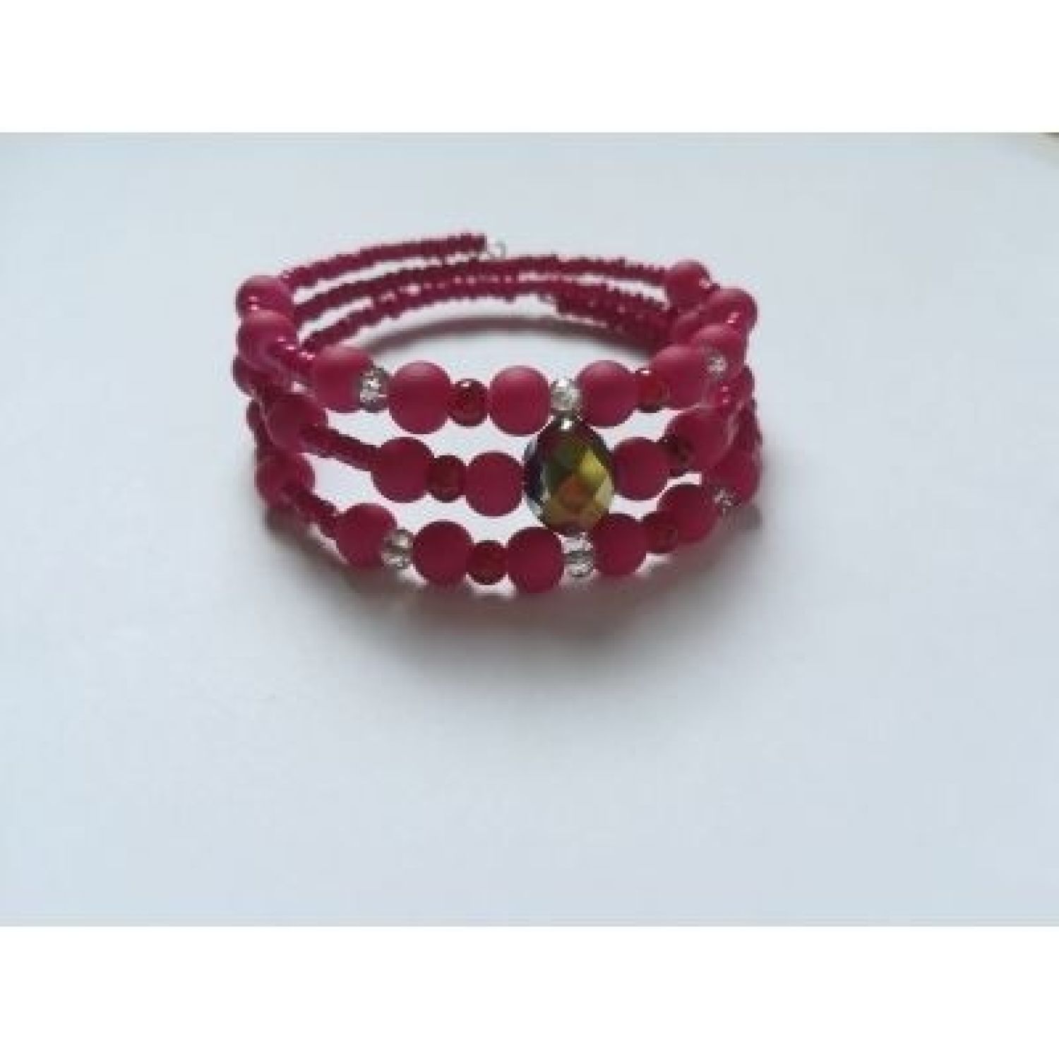 Pink and red beaded choker and memory wire bracelet.