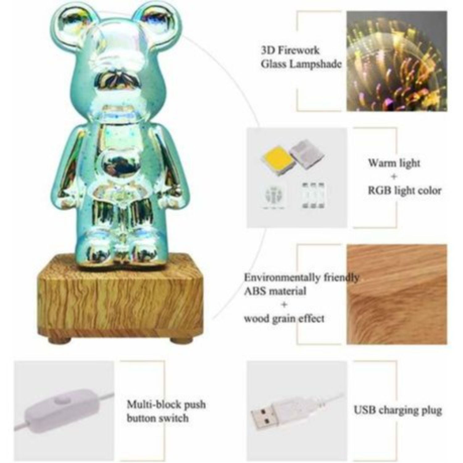 Brighten up any space with the LED Firework Bear Lamp. This enchanting lamp features dazzling, colourful RGB lights that will create a mesmerising display in your room. The glass bear is elegantly crafted and sits atop a wood grain ABS base. With its USB-powered feature, you can conveniently plug it into any USB port for a seamless lighting experience. Whether you're looking to add a whimsical touch to your bedroom, living room, or office, this LED firework bear lamp is sure to be the perfect addition to your space. Illuminate your surroundings with its captivating lights and bring a cosy ambiance to any area of your home or workspace.