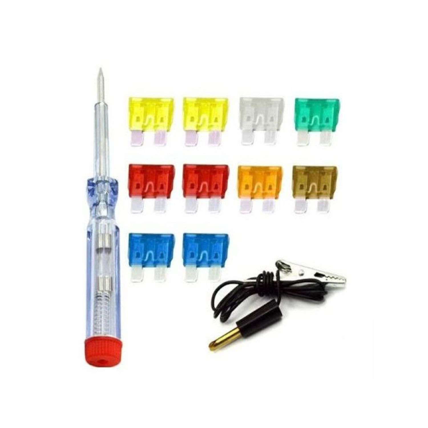 -It has 10 piece car fuses: 1 piece 5A, 2 piece 10A, 2 piece 15A, 1 piece 7.5A, 1 piece 20A, 1 piece 25A,1 piece 30A.