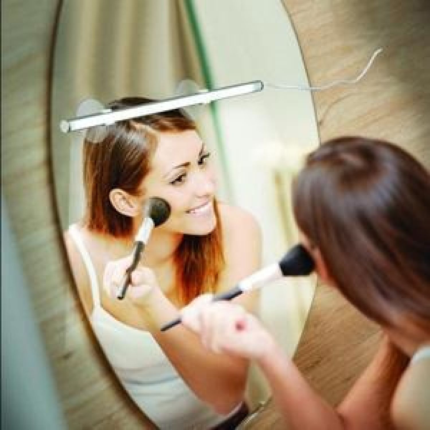 The new makeup light that instantly attaches to your mirror with two stay-tight suction cups to hold it securely in place.