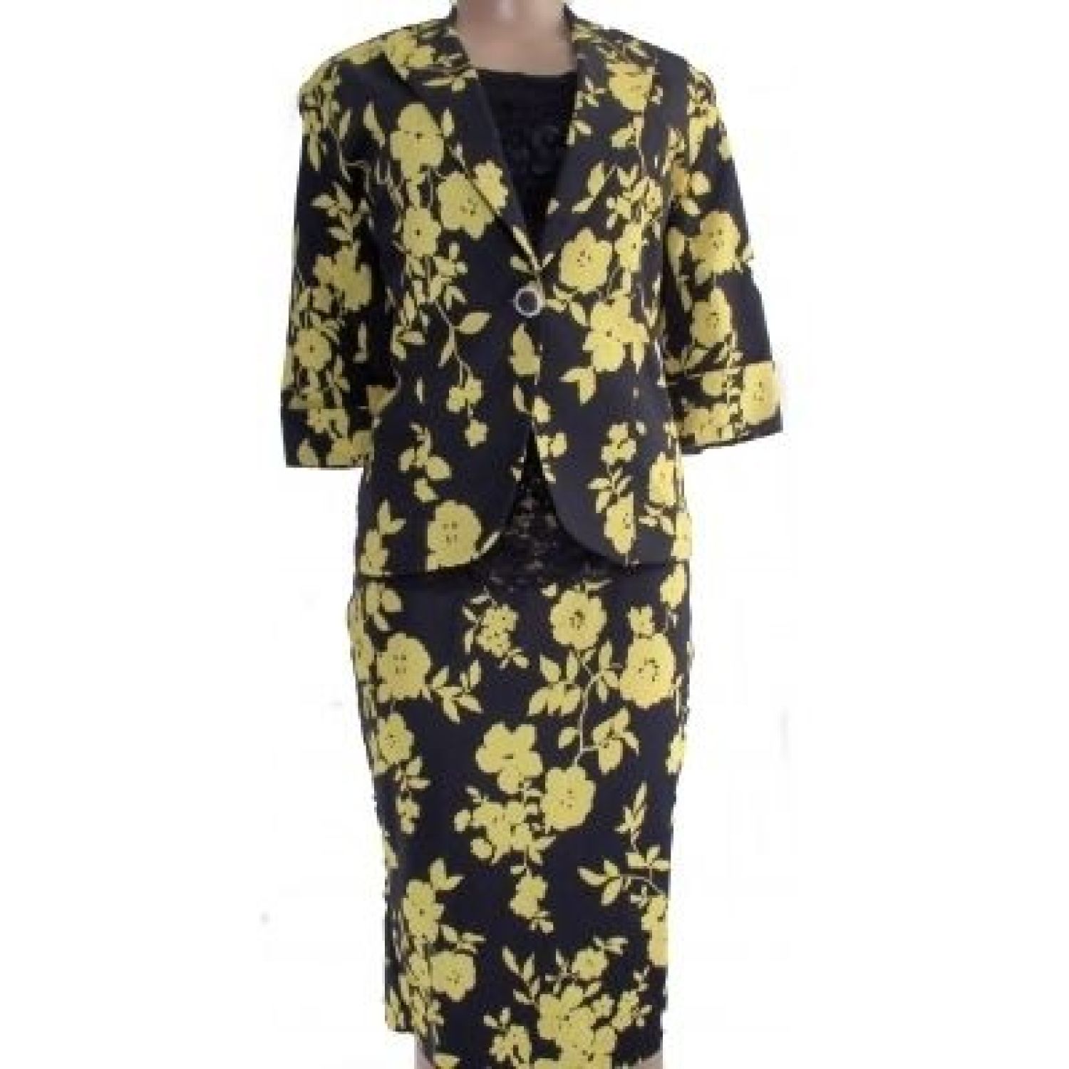Black and yellow floral print suit