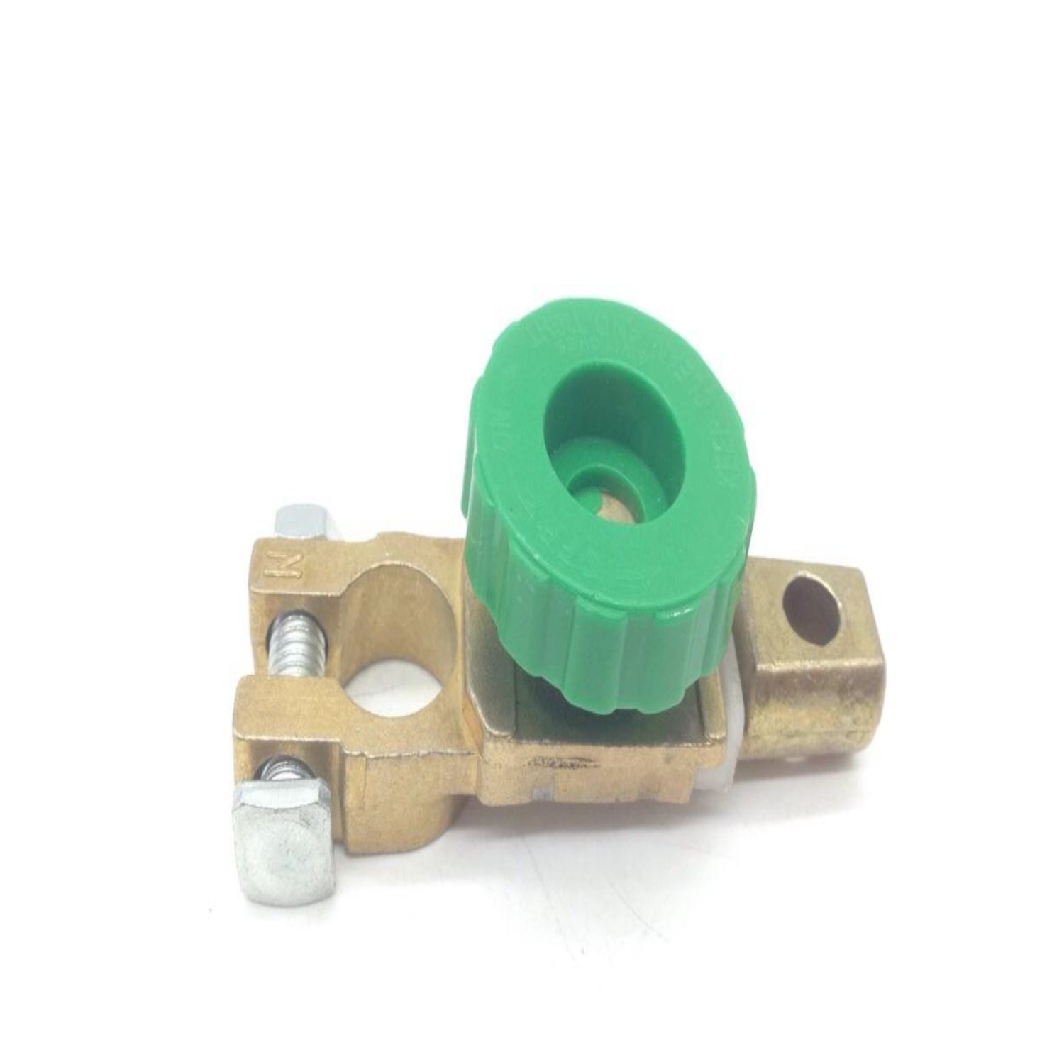 - Connects direct to the battery terminal and is cut off by loosening the green wheel.
