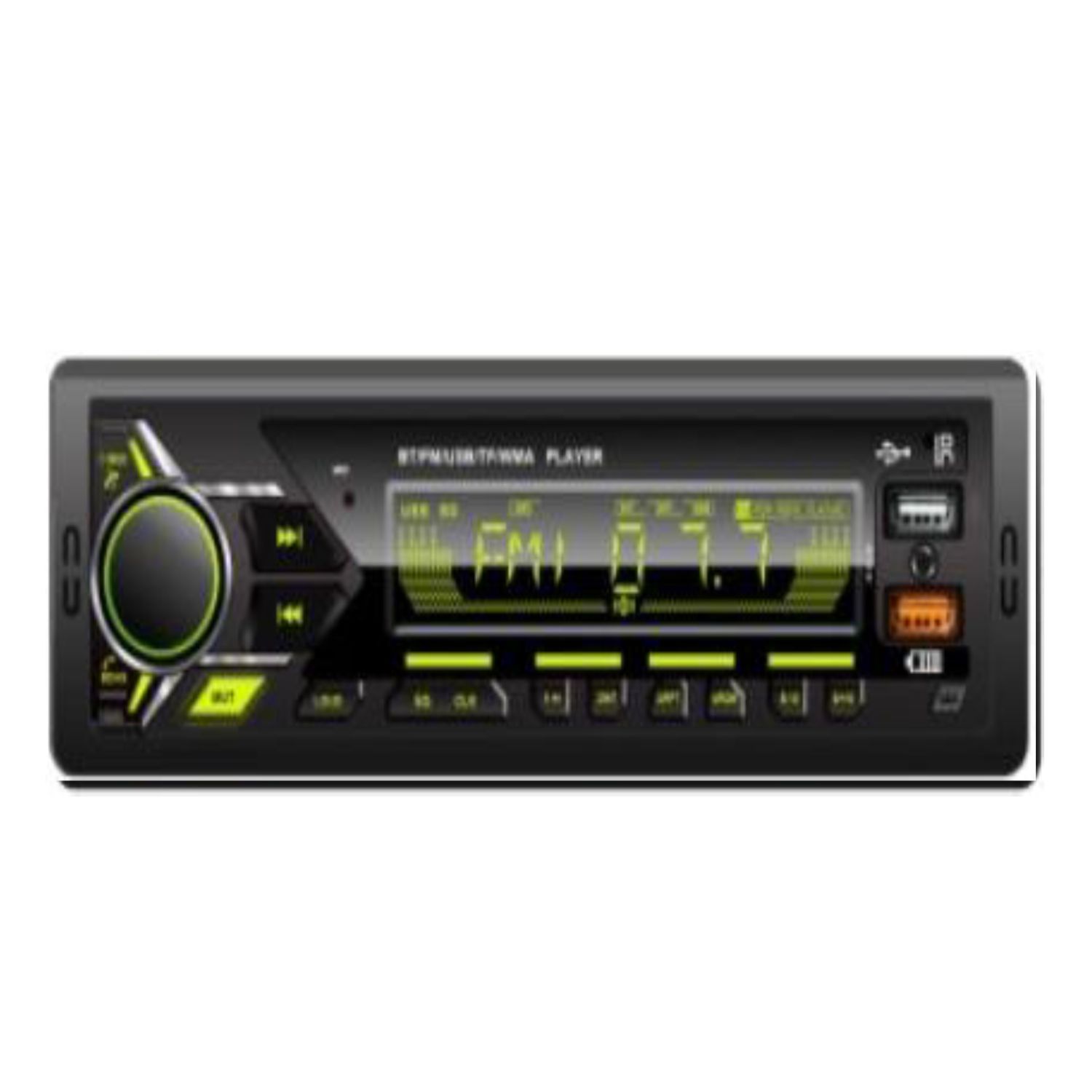 Single Din Multimedia Car Stereo System - Bluetooth Music | Hand Free Calling | MP3 / Dual USB / Micro SD / AUX-in | FM AM Car Receiver | Fast Phone ChargingThis 1din bluetooth unit with dual microphones. After bluetooth connection, you can receive and make hands-free calls without distractions, play stream music from your phone app and enjoy the music wave, as well as download the app and use your phone as a remote.This boat marine stereo supports up to 32G USB flash drive, micro SD card readers and auxiliary audio input.This single din head unit supports FM/AM radio, lets you say goodbye to boring driving.This Bluetooth marine receiver stereo can hook up to four speakers and supports RCA audio output.The deck audio supports fast phone charging.More Feature: ID3 tag/7-color buttons/power-off memory/time display/IR remote. Bluetooth for Hands-free Calls / Music Streaming / APP Control: This Bluetooth car radio brings you stable signal with the newly ungraded bluetooth 5.0. After bluetooth pairs with your phone, you can receive or make hands free phone calls, play your streaming music services like Spotify, Pandora etc. What's more, you can download the APP to the smartphone for free and then wirelessly control the unit such as change songs, adjust volume, or make other settings Multi-format Car Audio Receiver & 2.1A Quick Charge: This in dash autoradio is equipped with dual USB ports/mirco SD slot/Aux-in jack, which let you easily connect external devices like MP3/U dish/phone etc. and immerse in pleasurable music experience. 2.1A USB fast charging function is available for you to charge your phone anytime, anywhere FM/AM Car Radio & RCA Audio Output & Preset EQ: This mechless marine stereo lets you get clear and stable FM/AM and supports RDS that tells you radio music titles, station name and more. You can adjust the FM/AM frequency to reach real-time news, music, weather forecast etc. Features 4 RCA ports for audio output, this head unit supports left and right pre-amp, and you can hook up to four speakers. The built-in EQ configuration lets you choose your favorite music style like Pop, Rock, and more LCD Display & Multicolor Changeable Buttons: This single din digital media player is designed with high contrast LCD display and 7 color changeable physical buttons, which brings you perfect visual experience. The LCD panel is also convenient for you to know the telephone number, time, radio channel, music title, artist, etc. Variable illumination RGB setting lets you select your favorite color to match your mood (Red / White / Blue / Green / Yellow / Purple / Azure/Auto) Universal Single Din Design & Best Service: This car stereo system is true single din standard size design( 7"x2"), which perfectly fits for most car models with single din dash opening. Super easy install and set up. Please make sure the mounting location fits the size of the radio. We provide 1-year warranty and great customer service. Please feel free to contract us for any questions about the deck unit. Friendly note: working voltage is DC 12V; max power output is 4x 75W