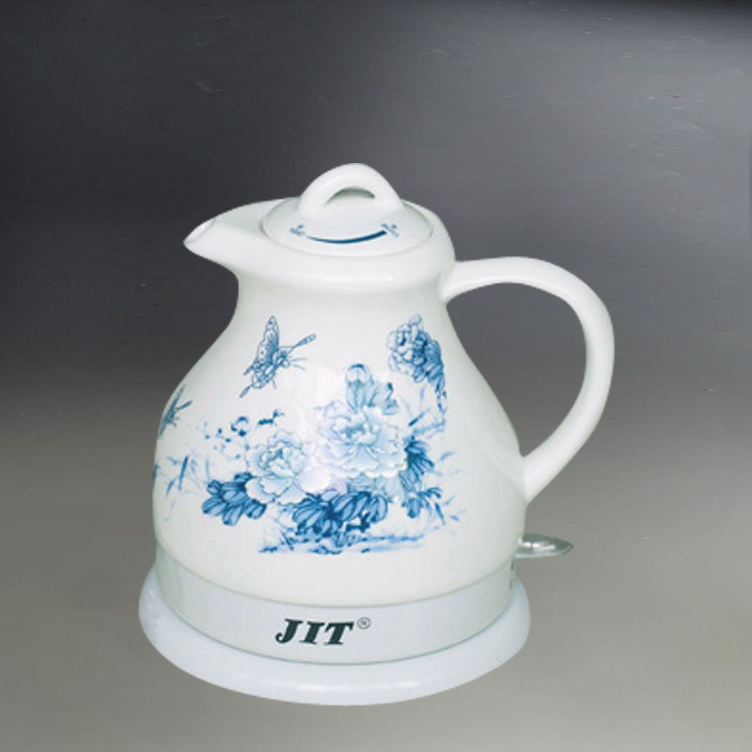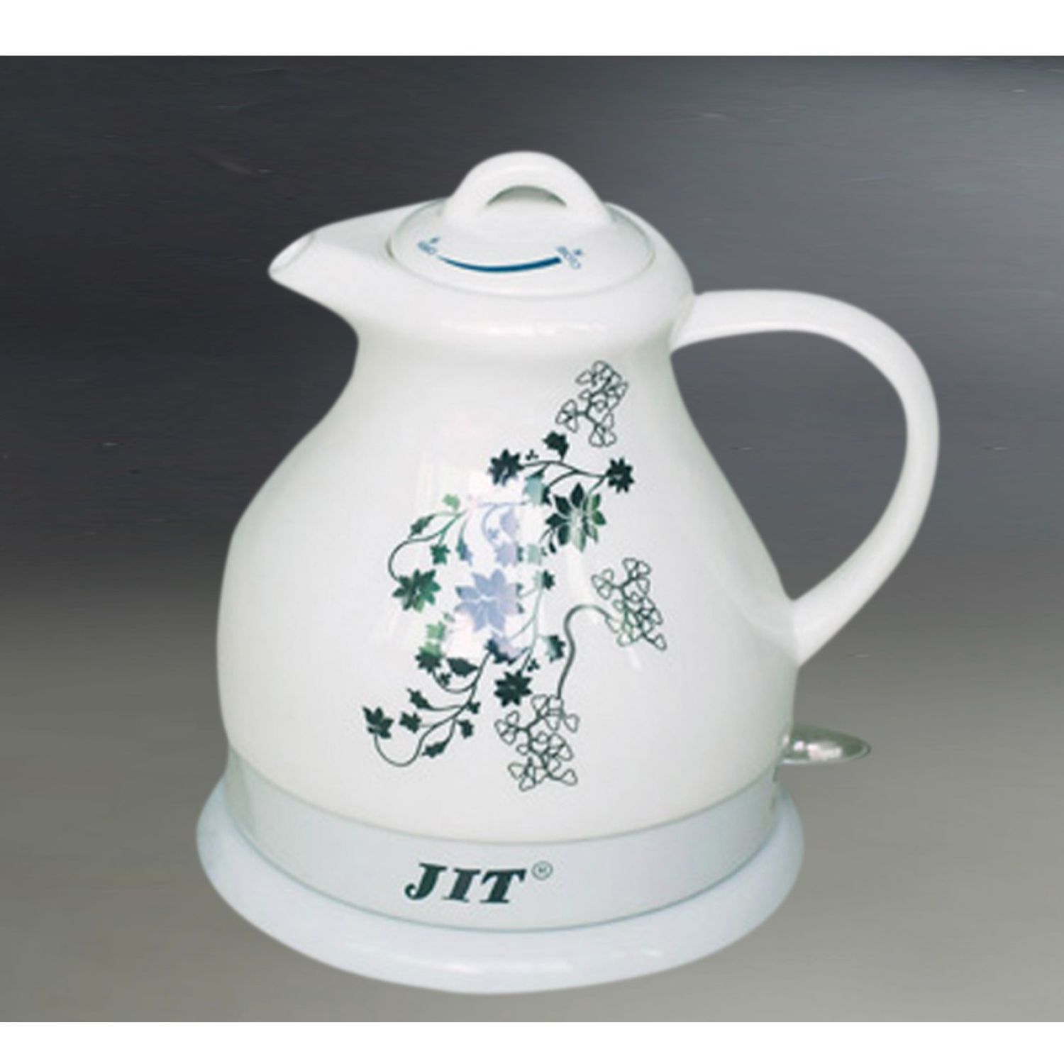 Electric Kettle, 1000W, 1.2 L, cordless, porcelain, made from the choice kaolin, fired in the 1350 Celsius kiln, white glaze, decal design(three designs for selection), the locked lid, helping to improve water quality abd benefit your health